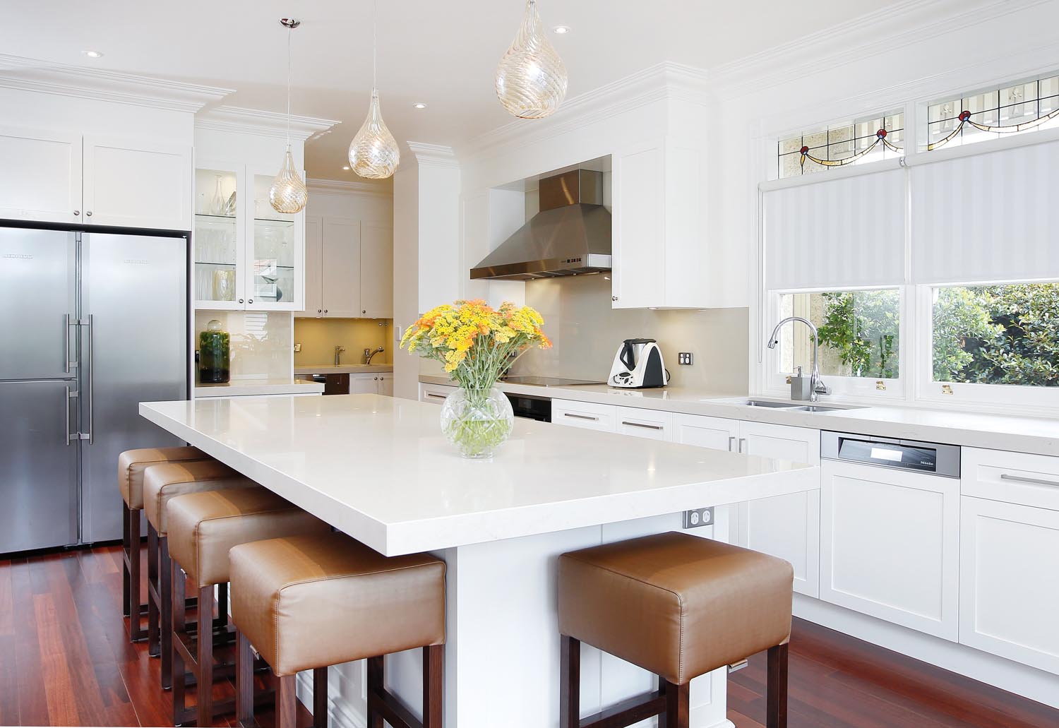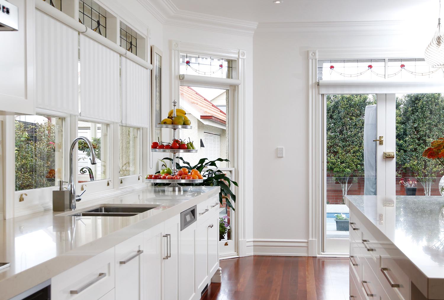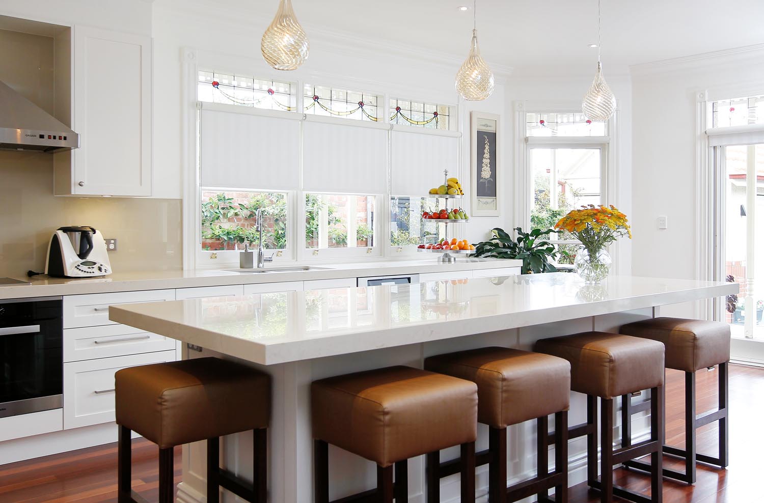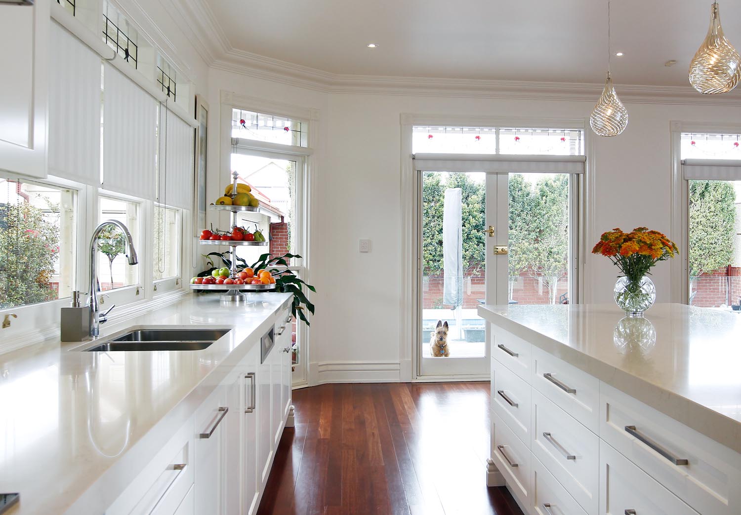 This sprawling 1920s bungalow in Moonee Ponds had previously been extended towards the rear to create a kitchen with a living and dining area. While spacious, the floorplan failed to take full advantage of the area and the kitchen was limited when it came to bench space and storage.