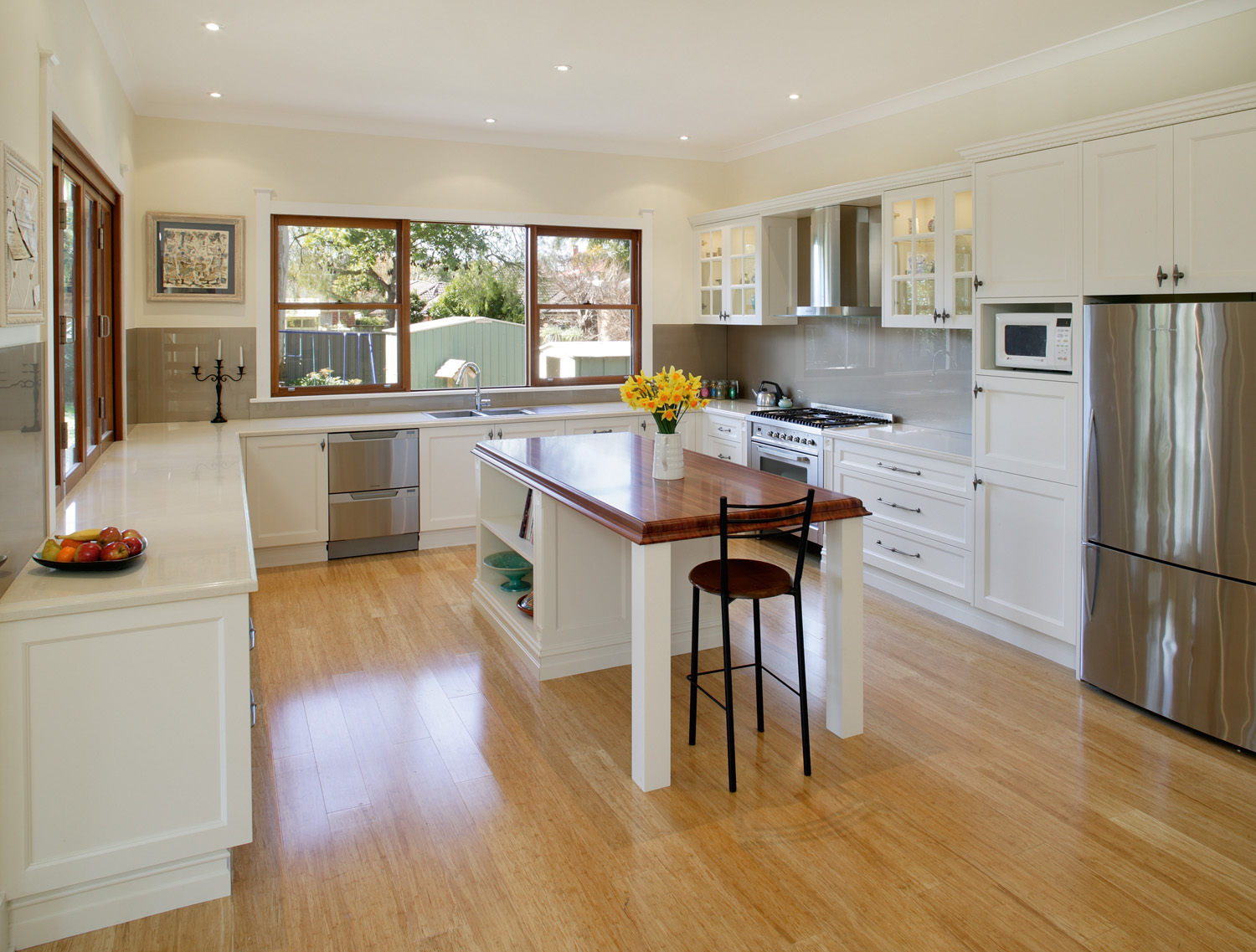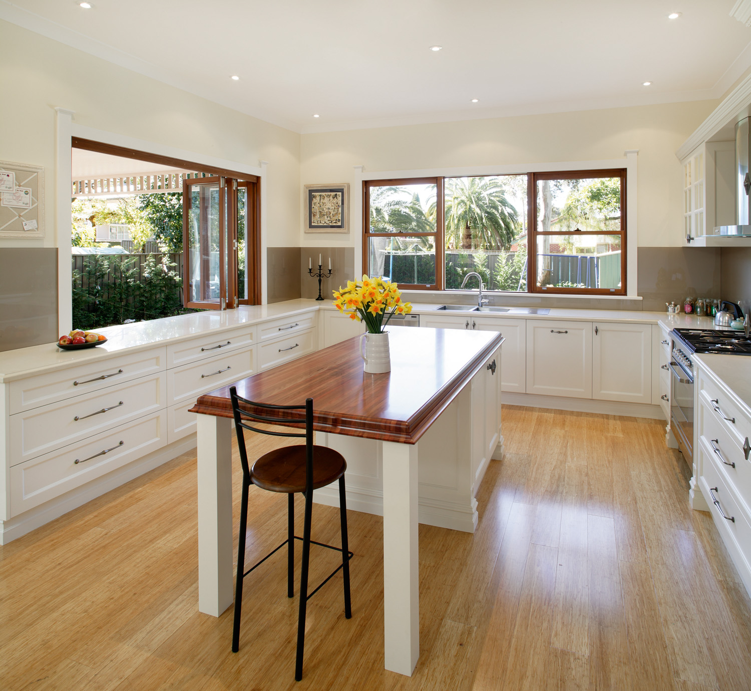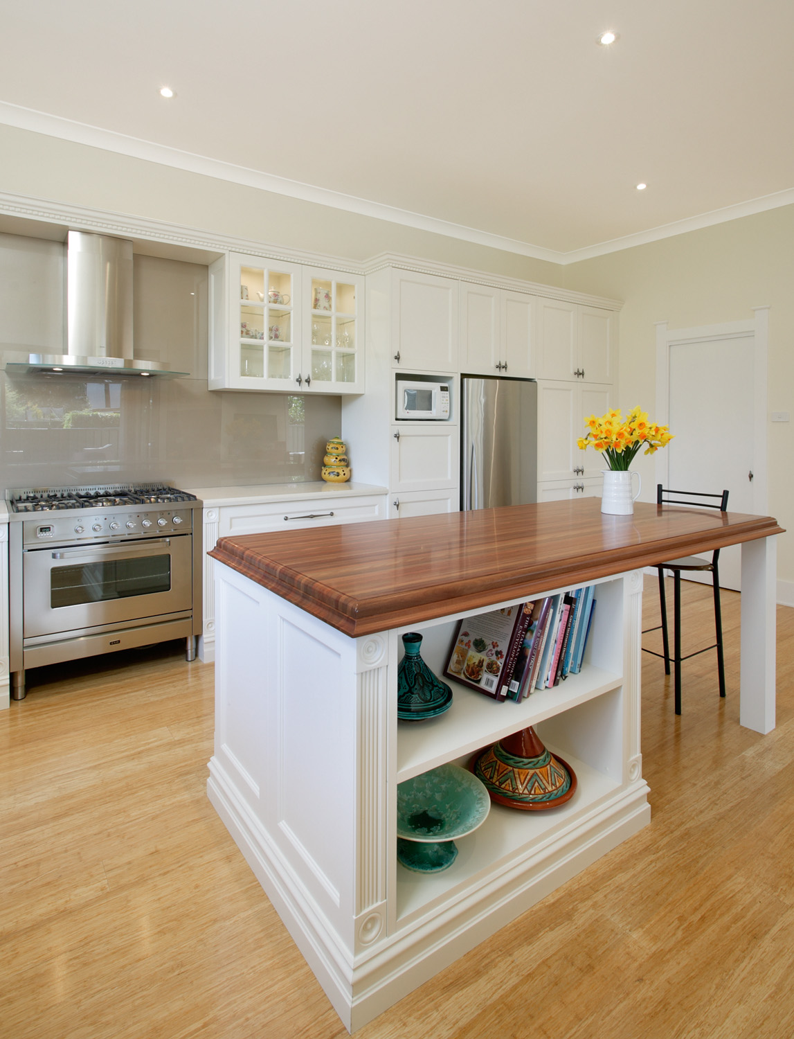 When renovating their kitchen, owners devised a brief for a Federation/modern-style kitchen to blend into the rest of their house. It had to be an entertainer-style kitchen, feature plenty of storage and be a place to have kids around doing homework while preparing meals. The result is a light-filled French provincial-style kitchen with a selection of modern elements.