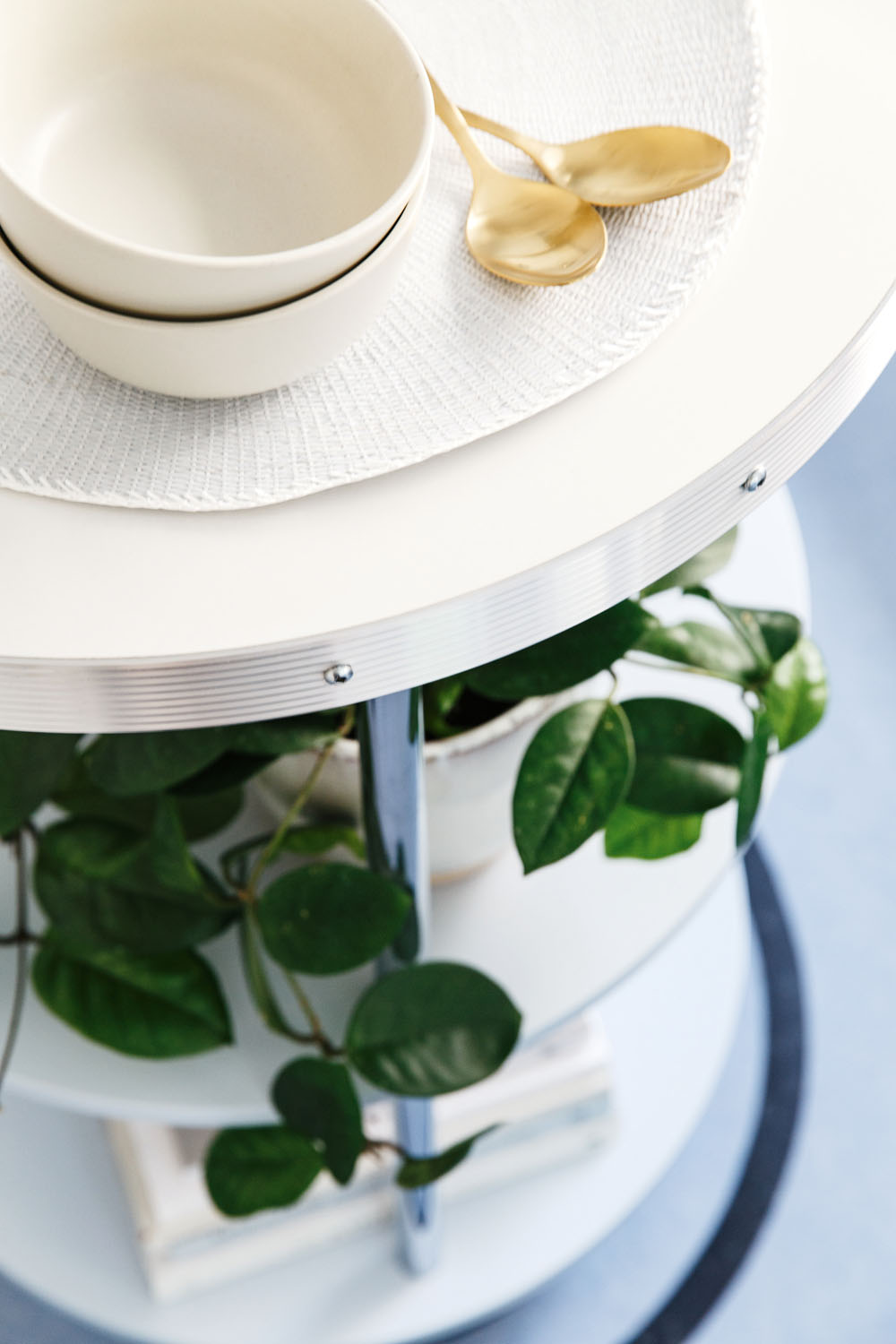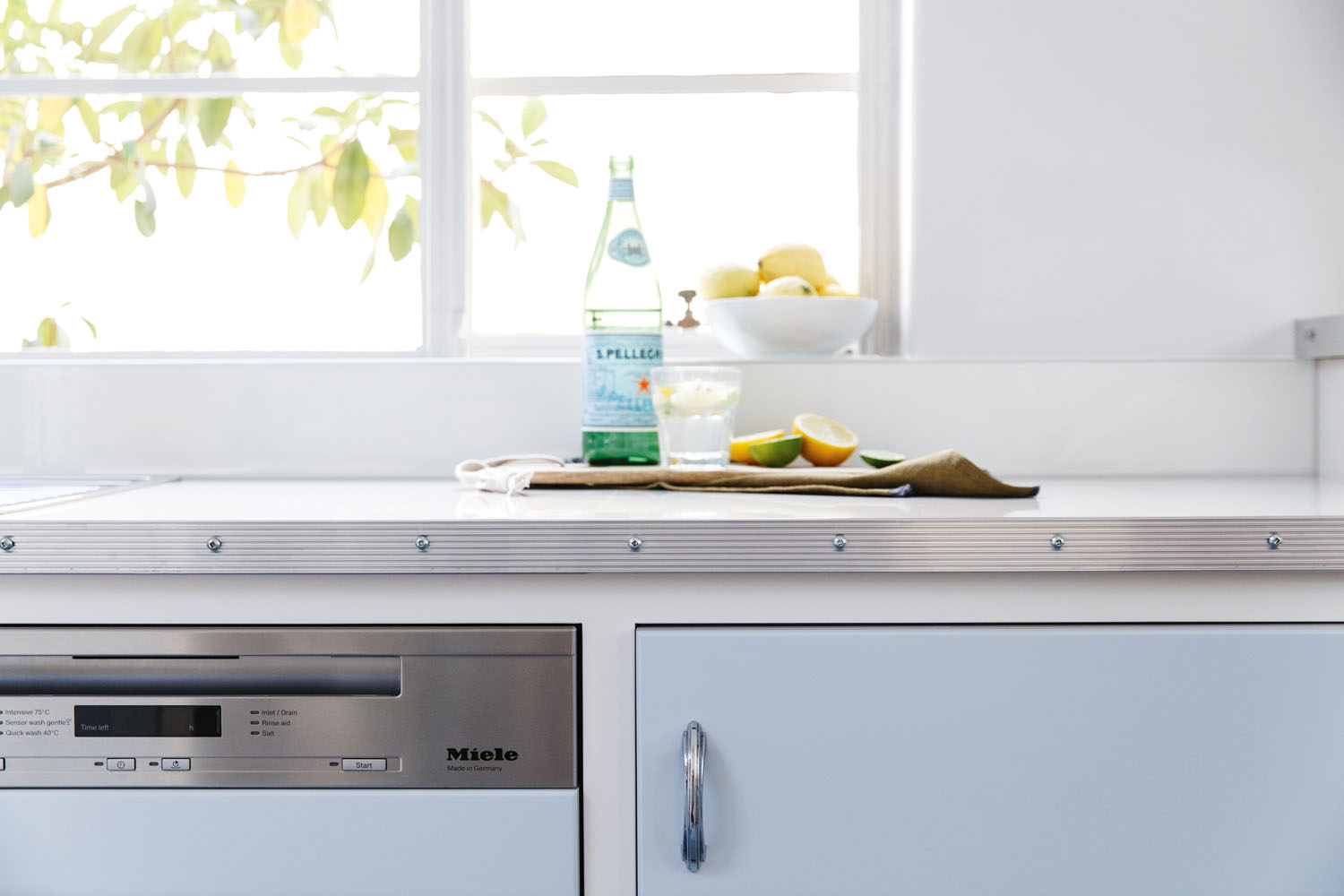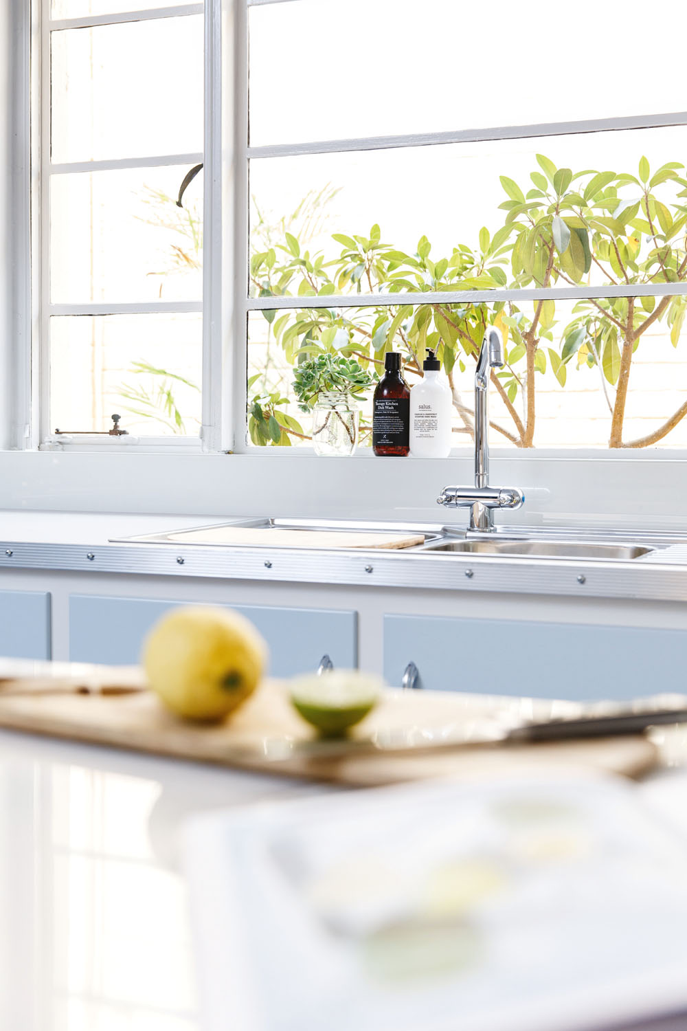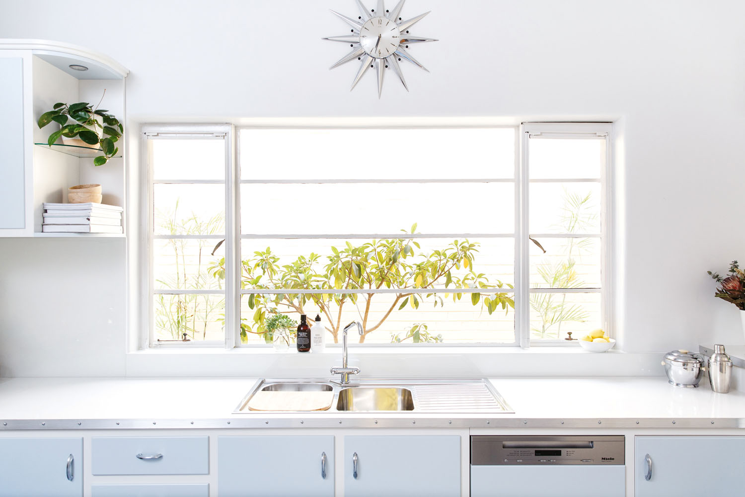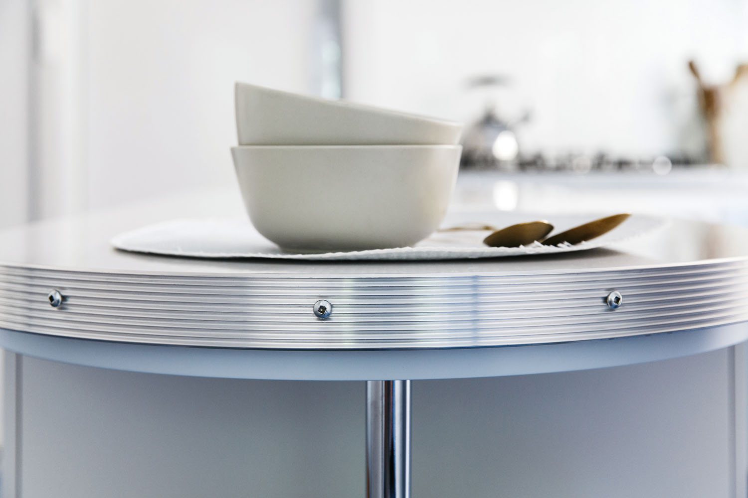 Meanwhile, Deborah and Bob delved into the world of 50s-style décor and architecture. This research was the foundation in creating a space that embraced cute retro qualities while still seeming fresh and new. The finished kitchen is effortless in its look and feel. Featuring light pastel colours, the design has used chrome to accentuate the length of the room. The windows have been used effectively to open up the space with light and air.