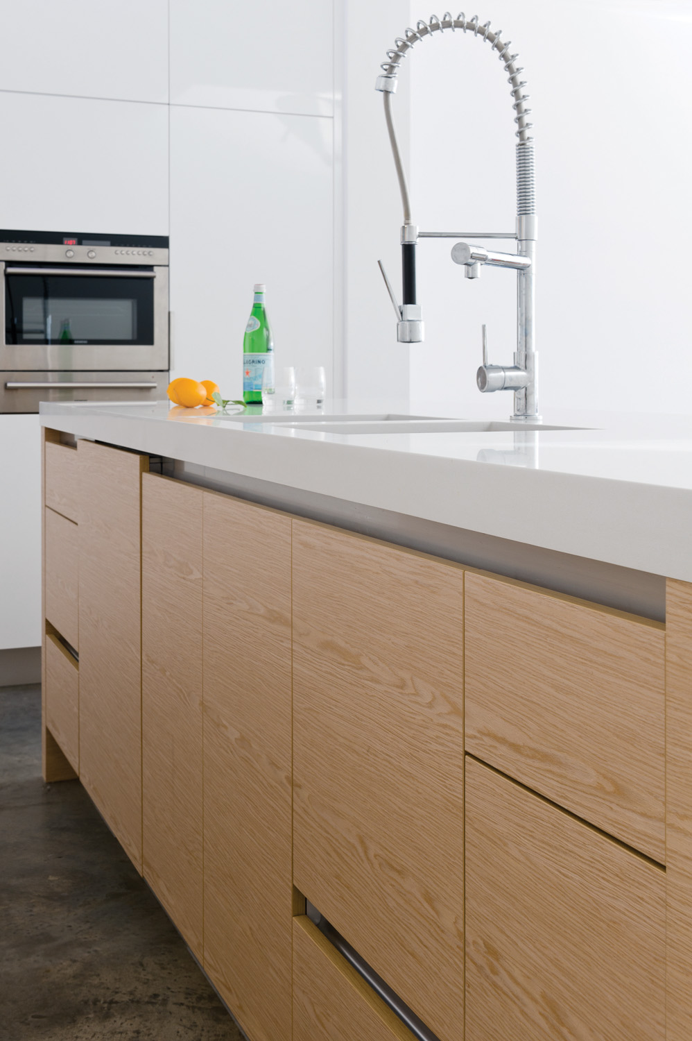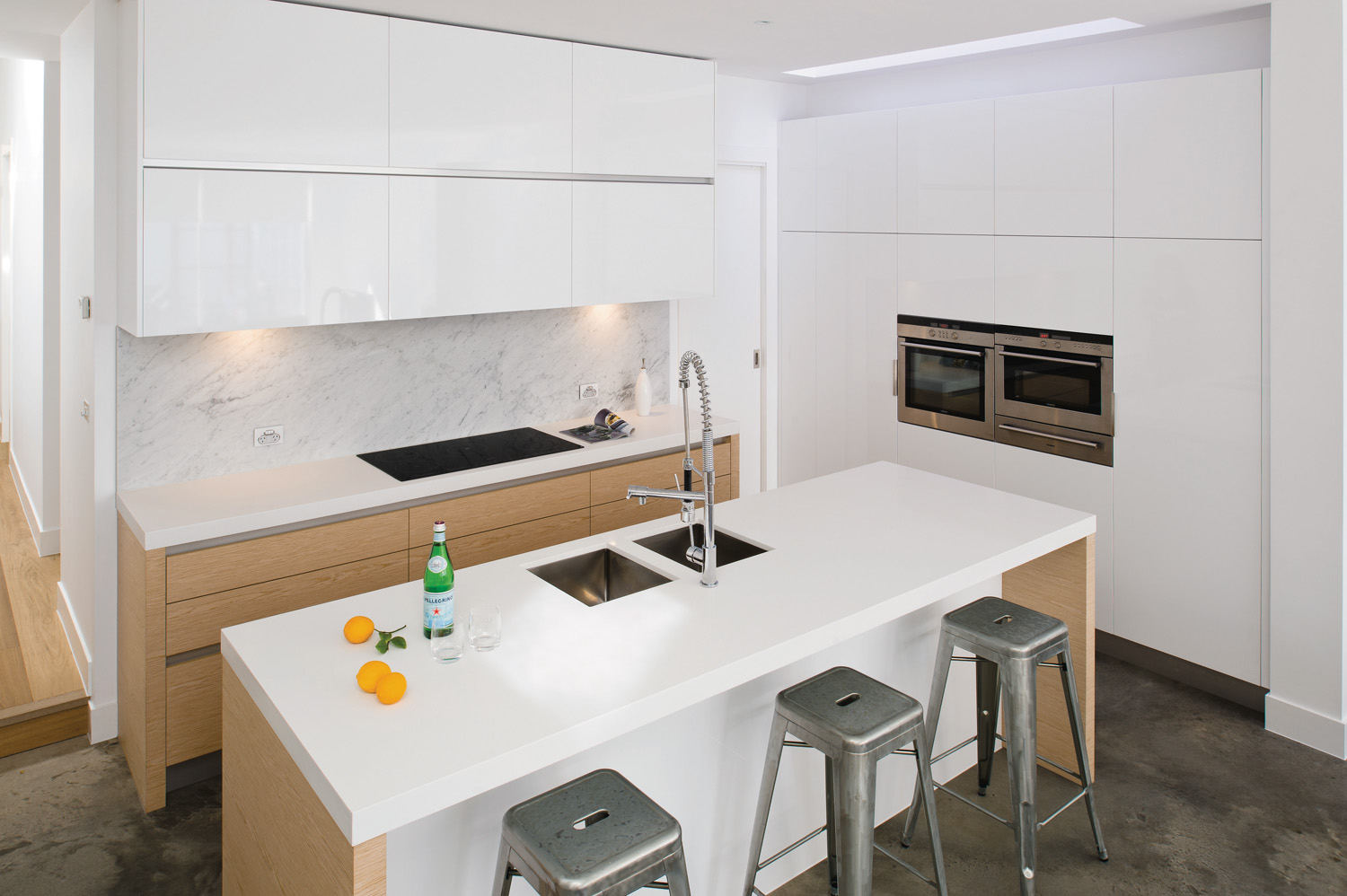 The owners of this sleek kitchen had just built a new home and when it came to their kitchen, they wanted something very European. Looking to the Scandinavian style of design for inspiration, their kitchen was to look very clean and simple — and this white space with light timber veneer features matches the owners’ vision perfectly. The kitchen was relatively small in comparison to many others but, as they say, good things come in small packages.