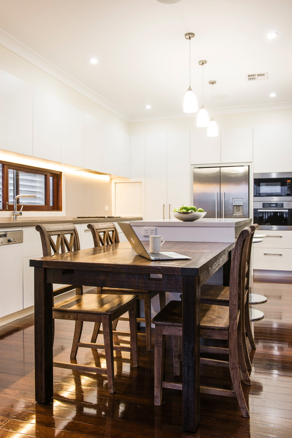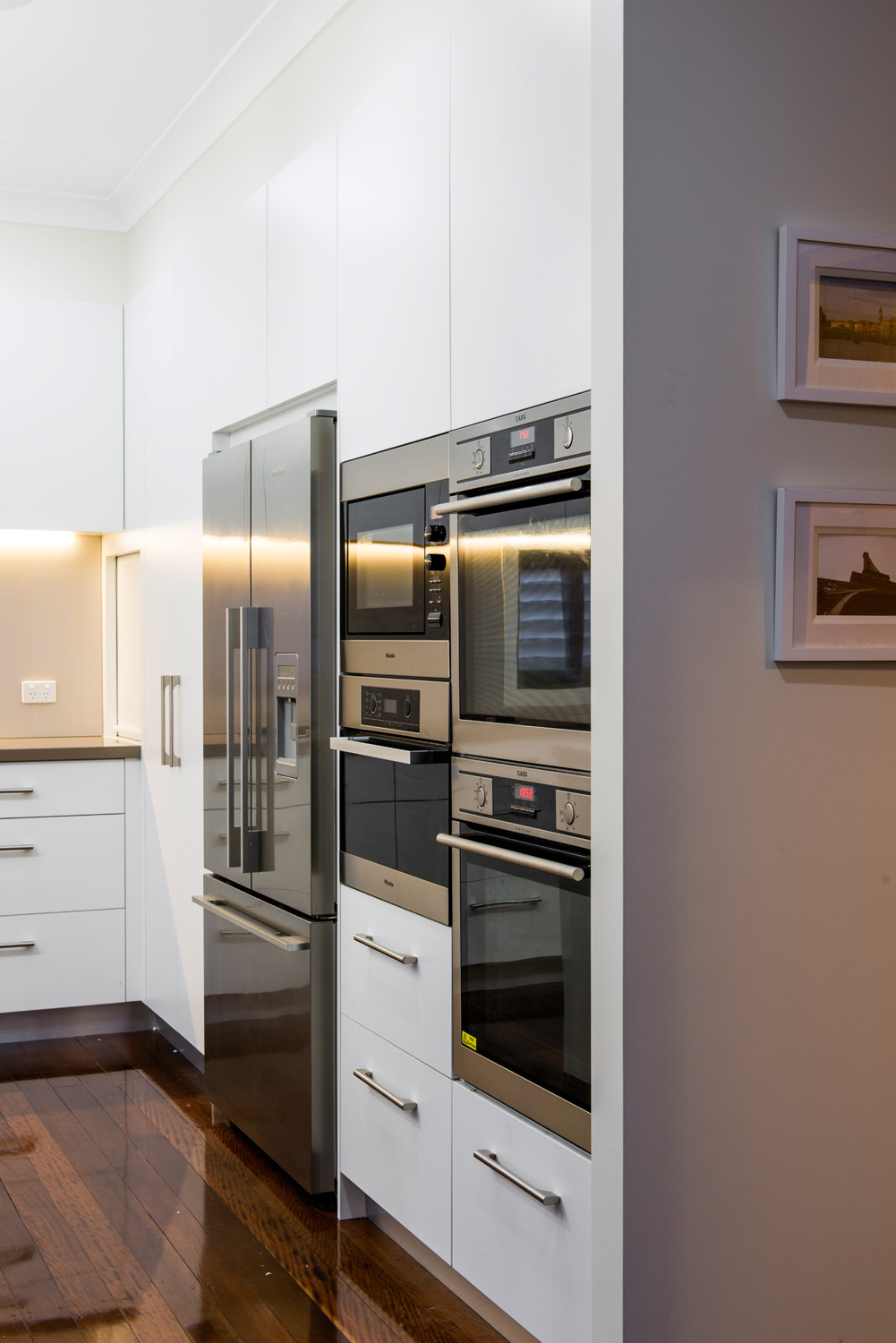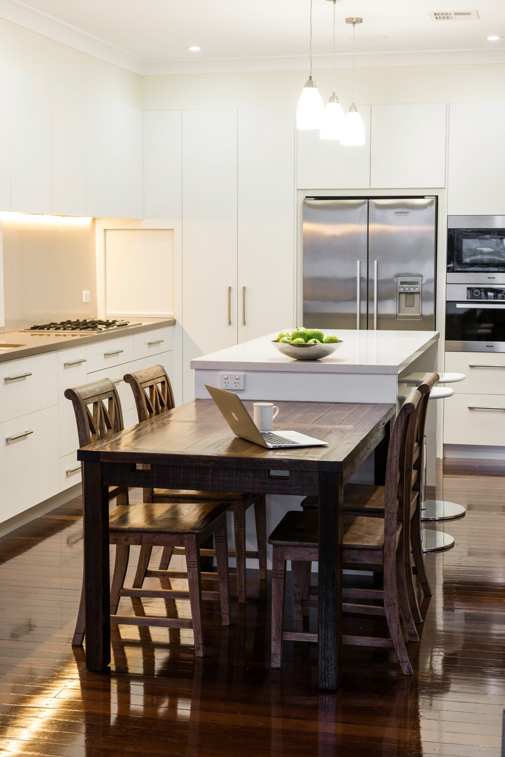 Integrating timber floors, gloss white panelling and modern streamline appliances, this spacious kitchen has it all