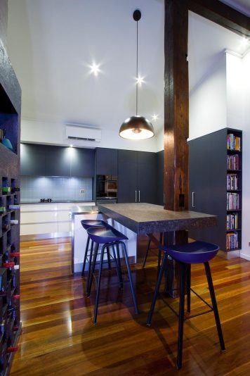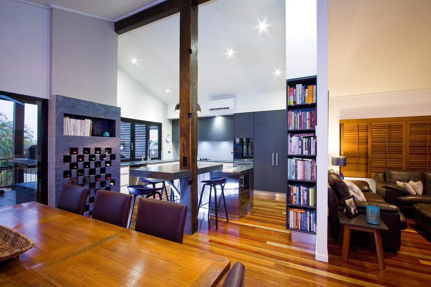 This sophisticated kitchen is proof that supporting posts and beams can be utilised as a stunning feature of one’s eating space