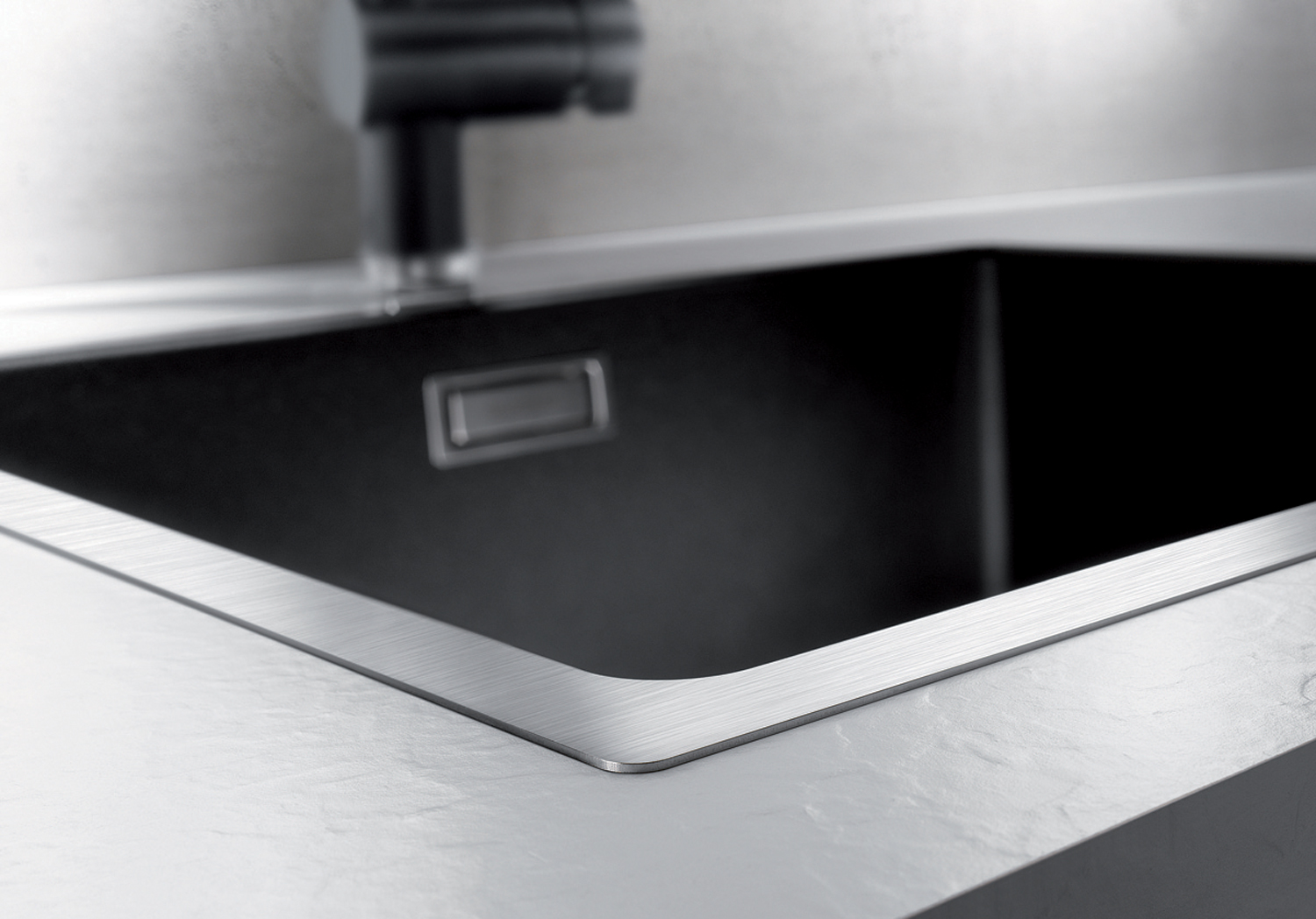 And what beauty it is. The epitome of outstanding European design, the sink exhibits a silky stone-like texture in an extra-flat, stainless-steel frame for an ultra-modern look. Bursting with design potential, the bowl can be paired with worktops of all colours and designs. The IF rim works seamlessly with laminate worktops as well as flush-mount installations in stone or glass. It can also be effortlessly matched with BLANCO ovens, cooktops and mixer taps to create a room that exudes sophistication.