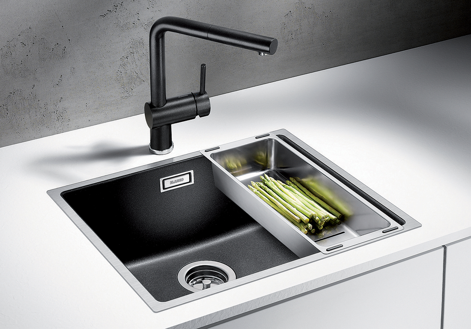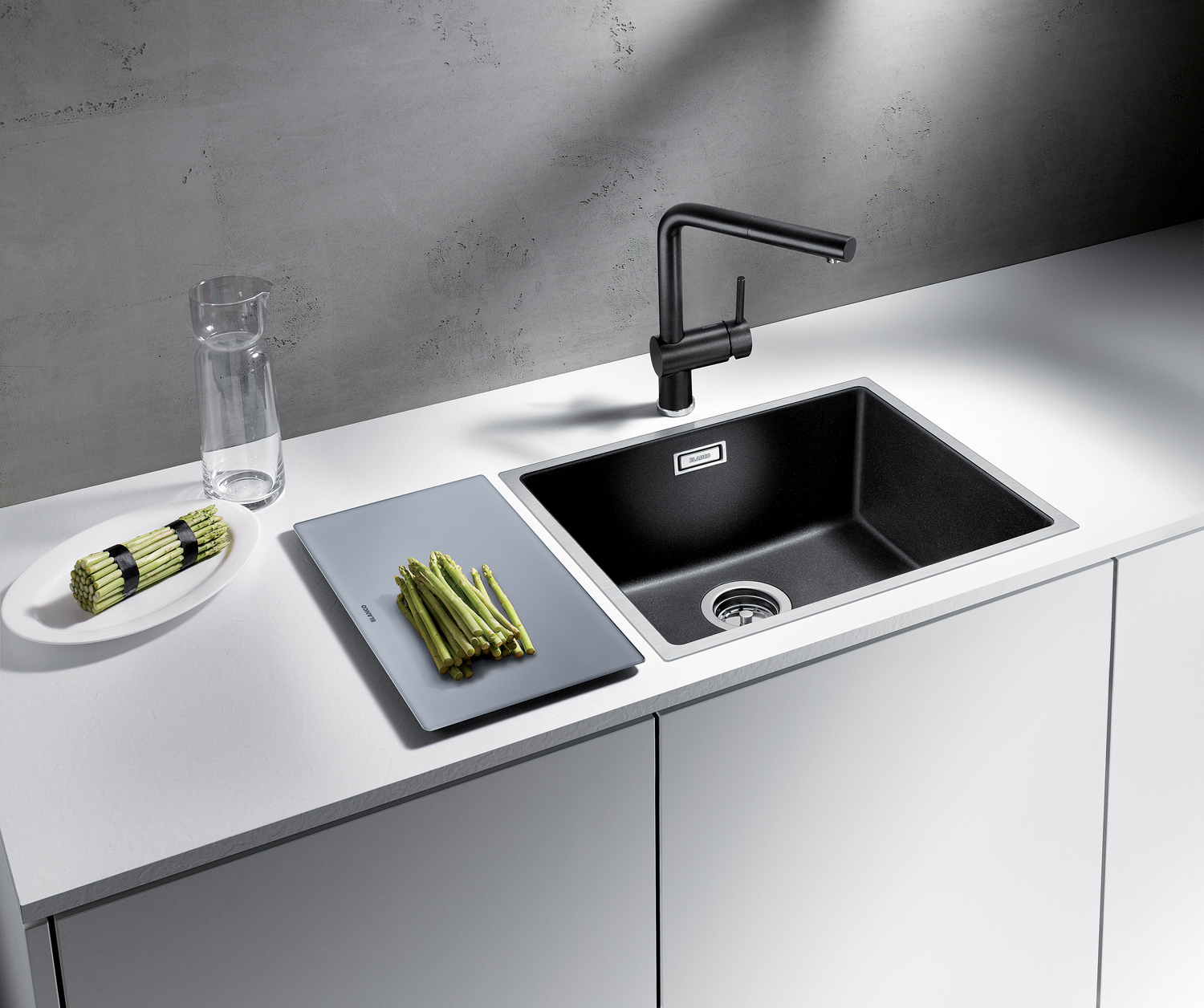 BLANCO is internationally renowned for designing sinks that unite form and function, and the BLANCO SUBLINE500IF demonstrates just that. The straight-lined bowl of the BLANCO SUBLINE500IF SteelFrame, with a width of 500mm and striking corner radii, is generously sized and makes work easy. Custom accessories are available to transform the sink into a versatile, multipurpose food preparation area, such as the stainless-steel multifunctional colander, stainless-steel basket and glass cutting board that can slide across the entire width of the sink.