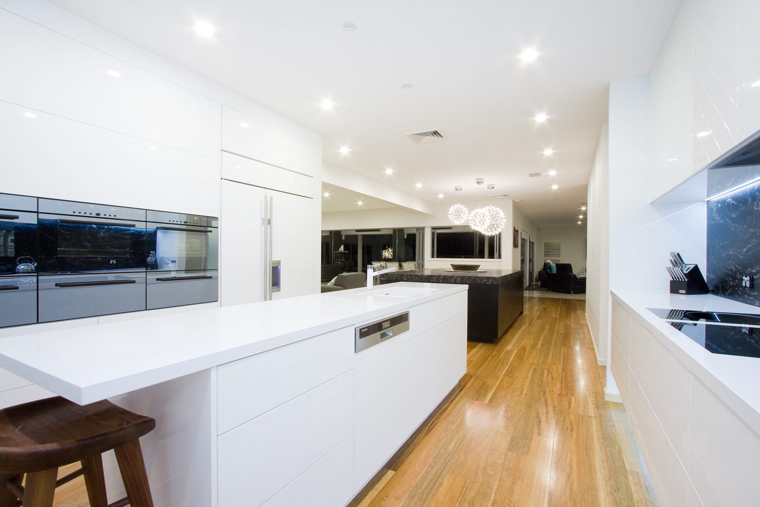 Handle-less drawers, along with the glossy white cabinetry and striking splashback, create bold yet clean lines. The highlight of this kitchen is the unique second island bench. This stunning feature benchtop can easily create a social dining experience at a moment’s notice. It is the largest ever made by the supplier and is the epitome of style and excellence.