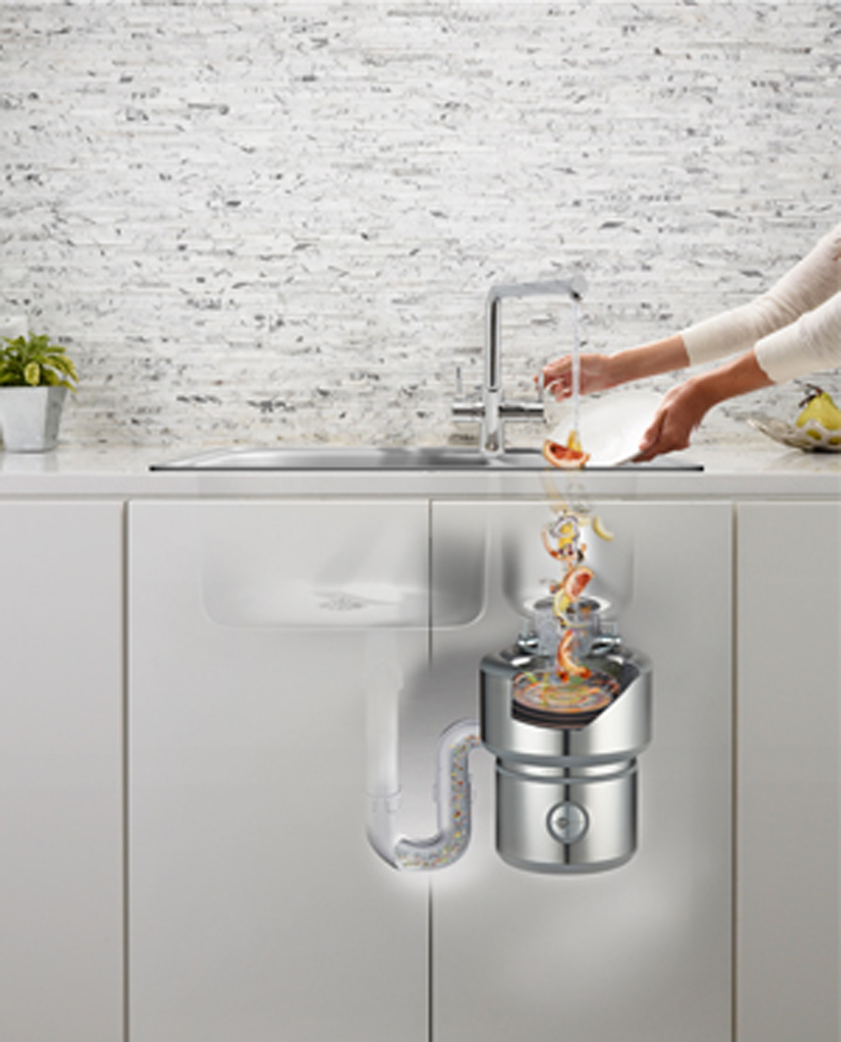 InSinkErator is a striking example of how technology and design combine to make our lives that much easier. The unit sits discreetly out of sight under the kitchen sink, and is easy to install in most kitchen sinks. All you need is standard plumbing and a nearby power source. It is also perfectly safe as the quiet grinding action means there are no knives or blades.