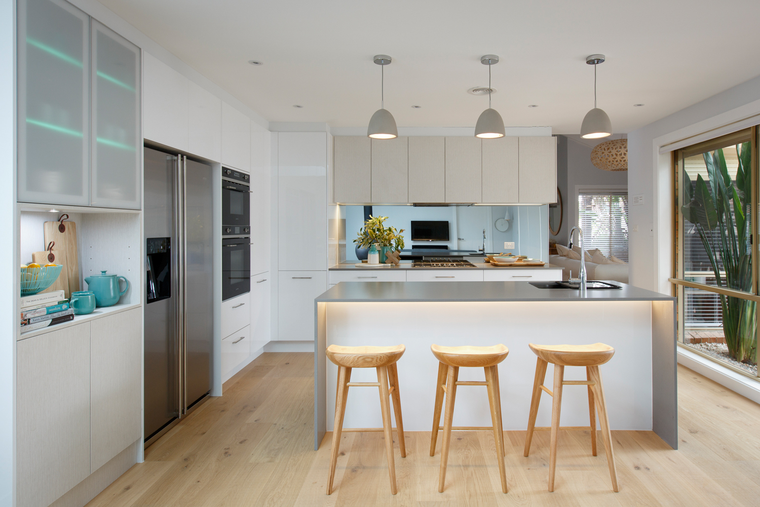 For example, greys work nicely with the silver tones of chrome or stainless steel, though you need to decide whether you will keep your kitchen looking cool and sleek by working with a predominantly grey, black and white palette, or if you’re going to warm up the look of your kitchen, by introducing elements like timber or colour.