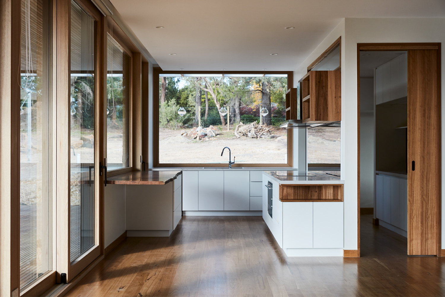 The ‘best-of-both-worlds’ Wood-Alu Range was used in this project with Victorian ash hardwood frames on the inside with low maintenance exterior aluminium cladding. The tilt & turn windows, clerestory and picture windows, lift-slide and hinged doors are highly energy efficient, triple glazed and airtight with a U-value of less than 1. The entrance combination features a step-free magnetic threshold to ensure draft-free living.