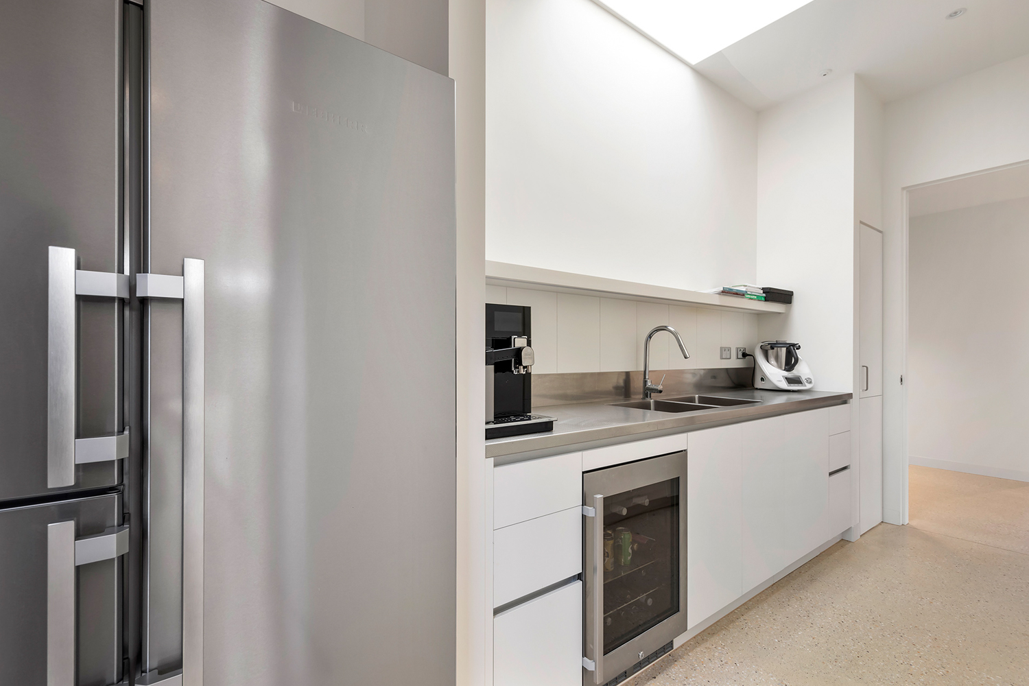 The site slopes by 2 metres from the back to the front. The floor level of the house was designed to be level with the back garden, which provided the opportunity for a large semi-basement that contains a 4-car garage, cellar, laundry, plant-room and storage for surfboards to accommodate the coastal lifestyle.