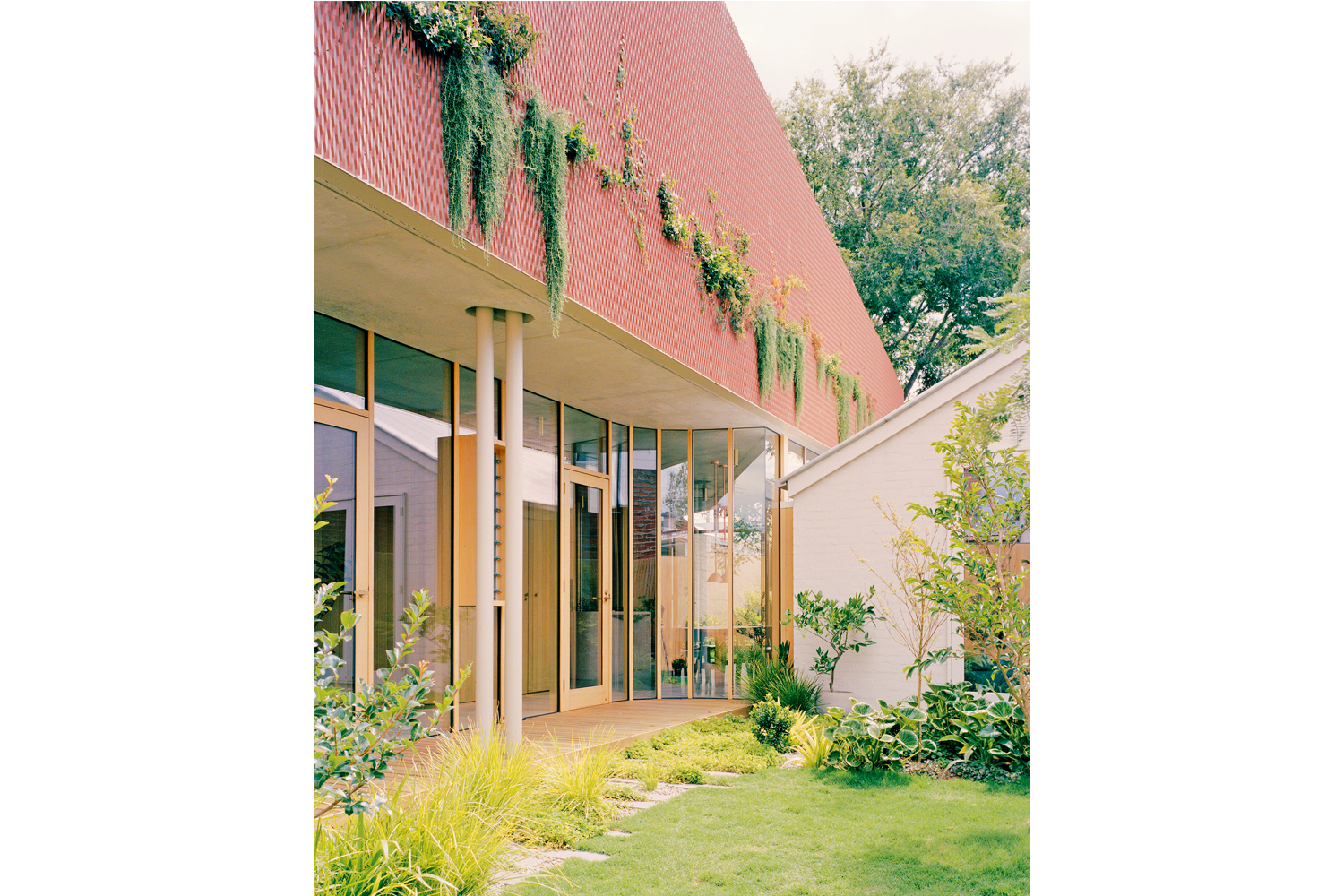 Autumn House effectively became two restorations and one addition. “The brief was to provide a contemporary family home with rooms and spaces sited in and around existing buildings, the mature elm tree, and providing a variety of intertwined garden spaces for the twin girls to explore and play,” says Melissa Bright, director of Studio Bright.