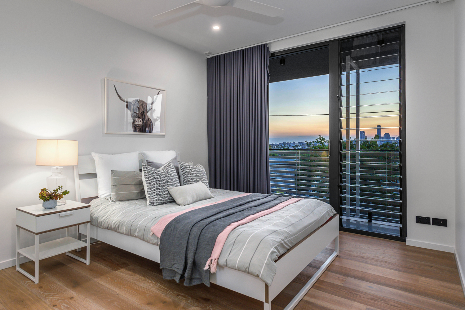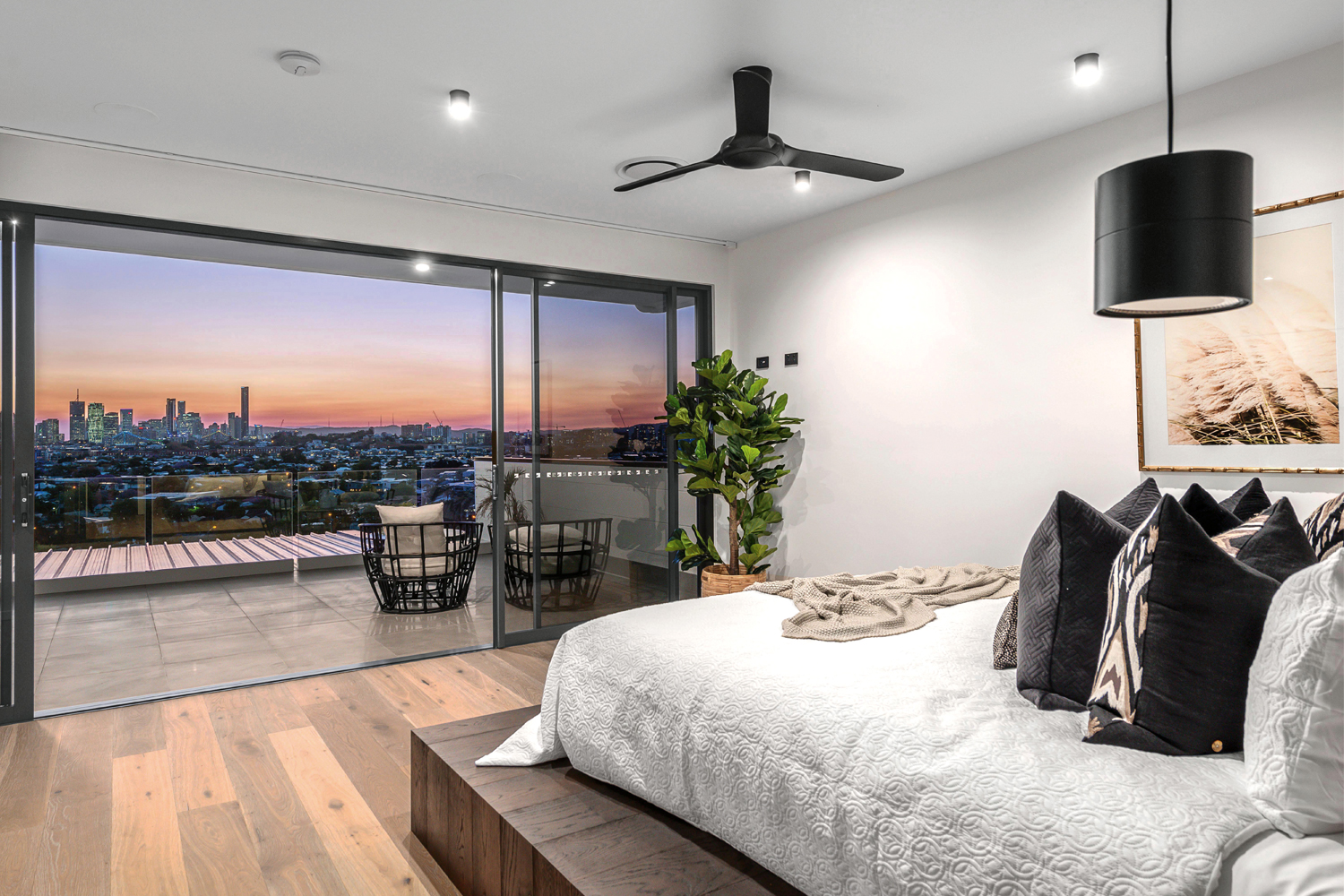 The Brisbane’s Stunning Vistas is not solely relished from the third floor though; the entire abode was constructed with viewpoints in mind from every storey, whether out through lower-level living rooms and private bedrooms, or even from the master bedroom, which is really the masterpiece of the home, reaching skywards from its premium fourth-floor positioning. “The master bedroom is on the last level, on the top of the world,” muses Aurelien.