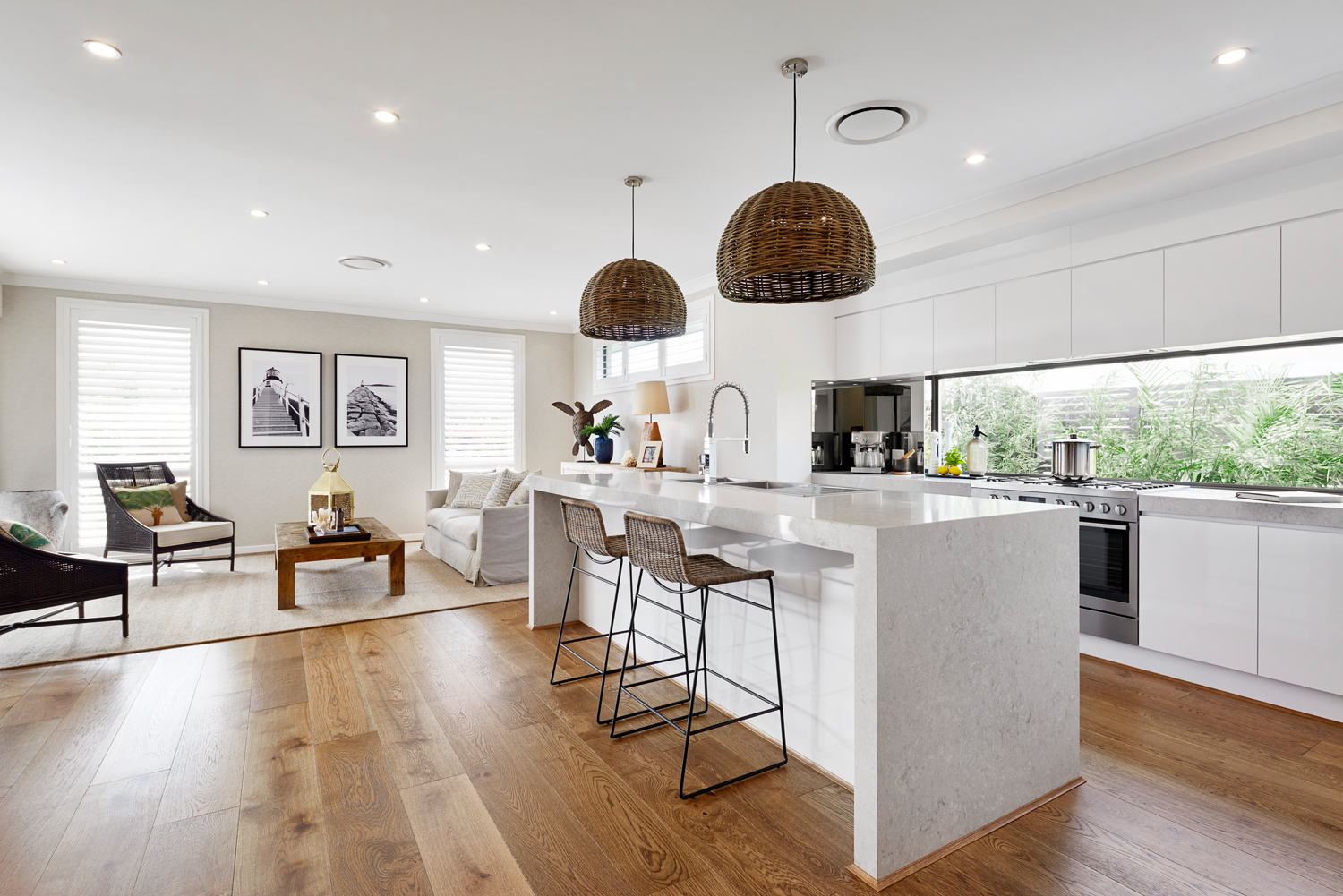 With a welcoming and inviting entry, the home’s first level features a separate formal sitting room at the front of the home next to the impressive portico entrance. At 32.6 square metres, the Kingston allows for greater family flexibility and multi-generational living, with a fifth guest bedroom on the ground floor containing an ensuite and walk-in wardrobe. Every corner of the home’s open plan layout is filled with natural light and warmth, with an integrated kitchen, dining and family area located at t he rear of the home.