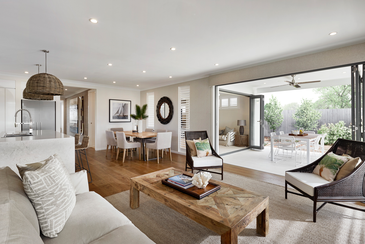 A contemporary mix of white, oak and timber materials, the home’s style reflects the strength and beauty of natural elements with a neutral material palette that highlights warm and earthy tones. With a façade exterior that reflects the coastline, the Kingston is the perfect fit for a seaside location, and features additional cladding for added protection from the natural elements.
