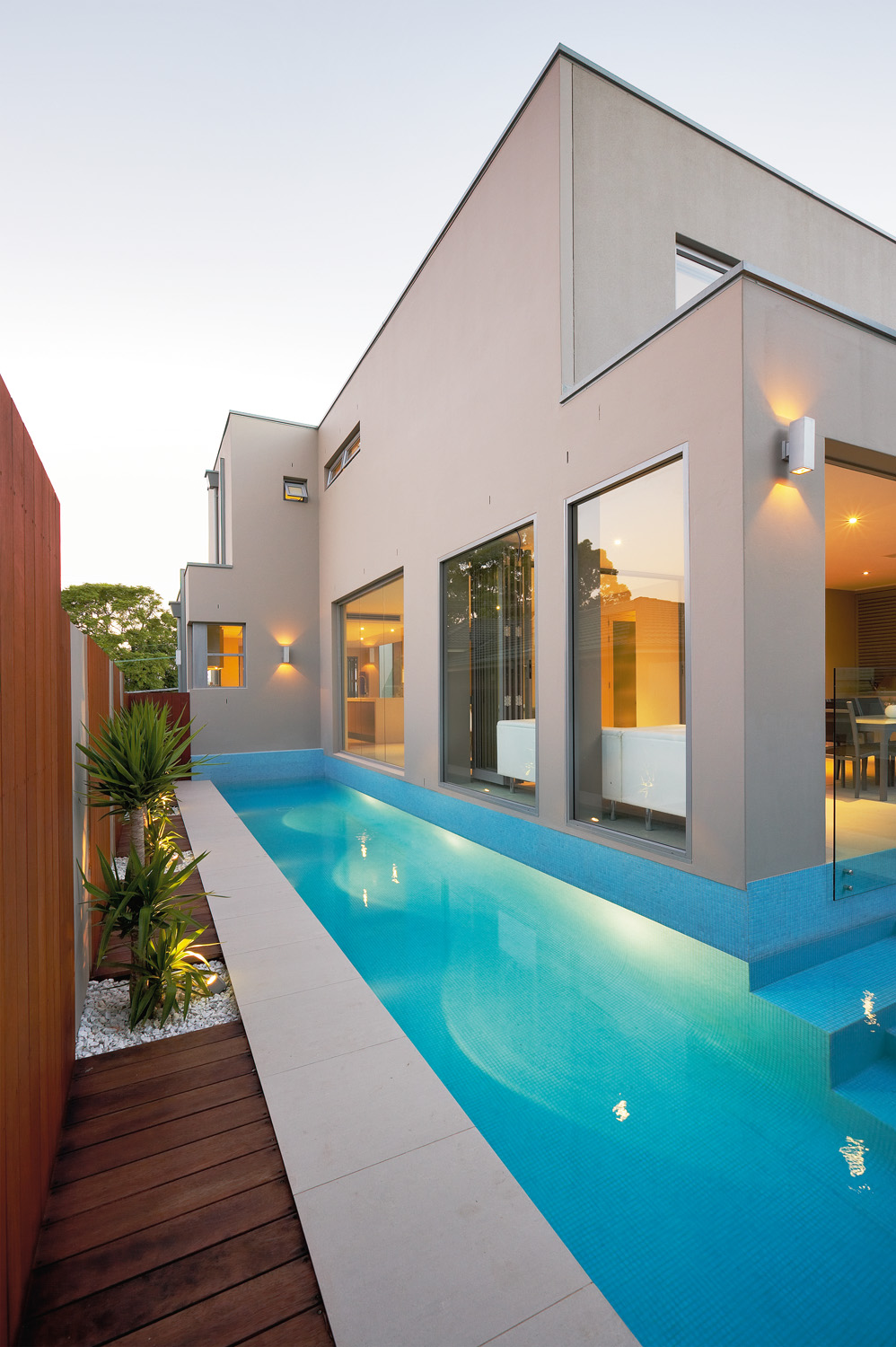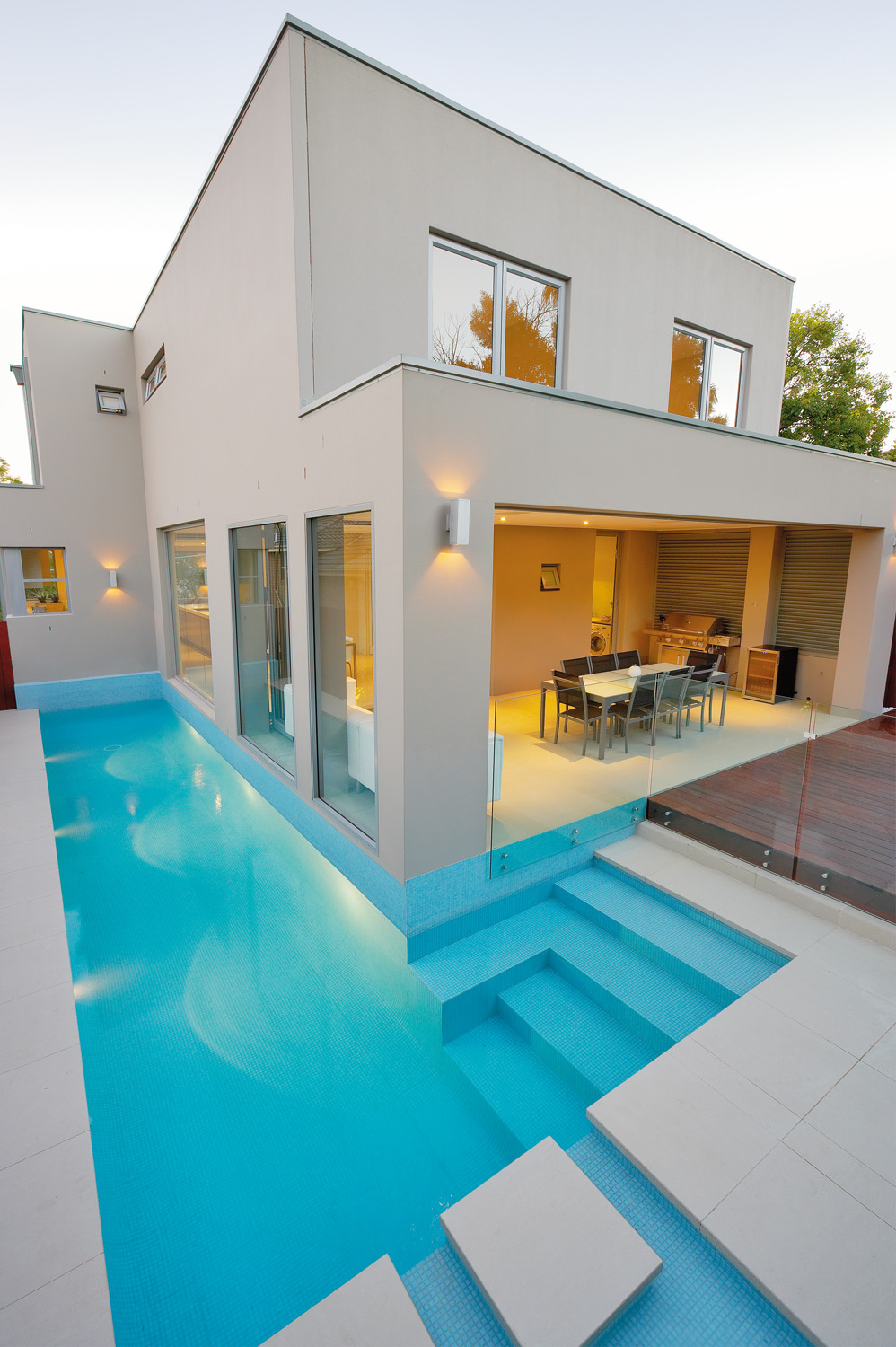 On the ground level, a dining area adjacent to the kitchen leads through to a tiled outdoor entertaining space that overlooks the lap pool, the ideal location for much-anticipated weekend entertaining of family and friends.