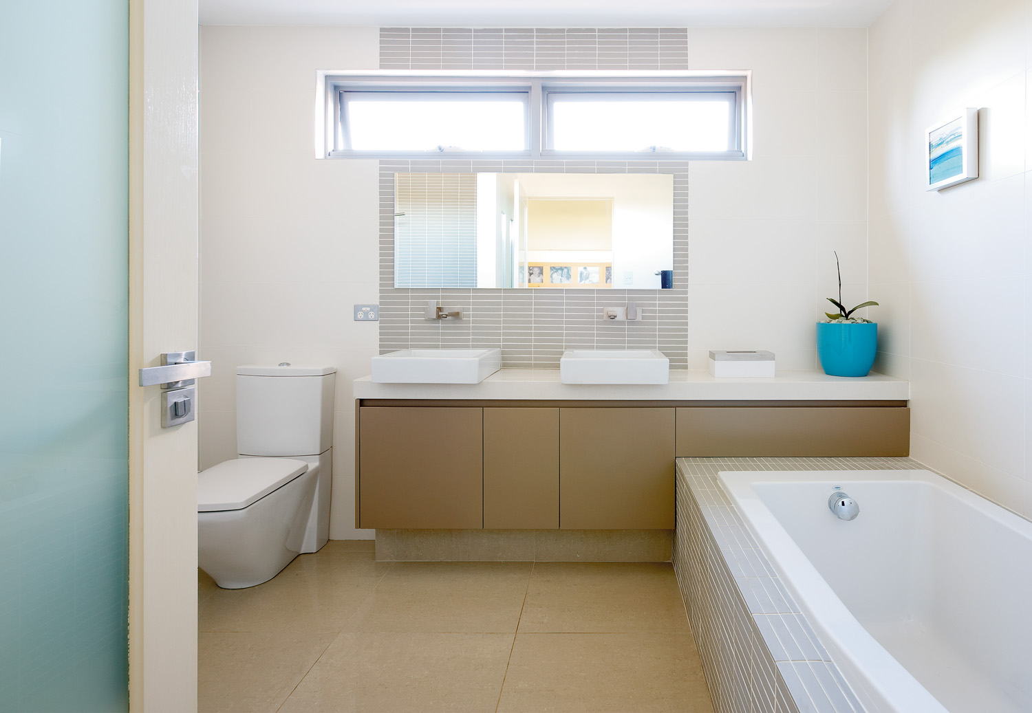 A palette of coffee and white was used for the kitchen and bathrooms and continues through the home — a colour scheme that doesn’t date. The resulting two-storey residence is a very unique design and fitting an open-plan home on such a restricted piece of land makes it all the more special.