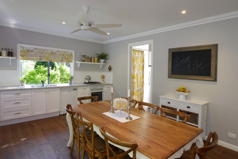 The verandahs were tailored to the aspect of the home, with further selections being made to personalise the interior such as specified appliances, natural oak timber flooring, kitchen joinery using Polytec and stone tops by Silestone were combined for a genuine country feel. Comfortable open plan living, and wide breezy verandahs of the home are a compliment to Manor’s philosophy ‘Built for Living’.