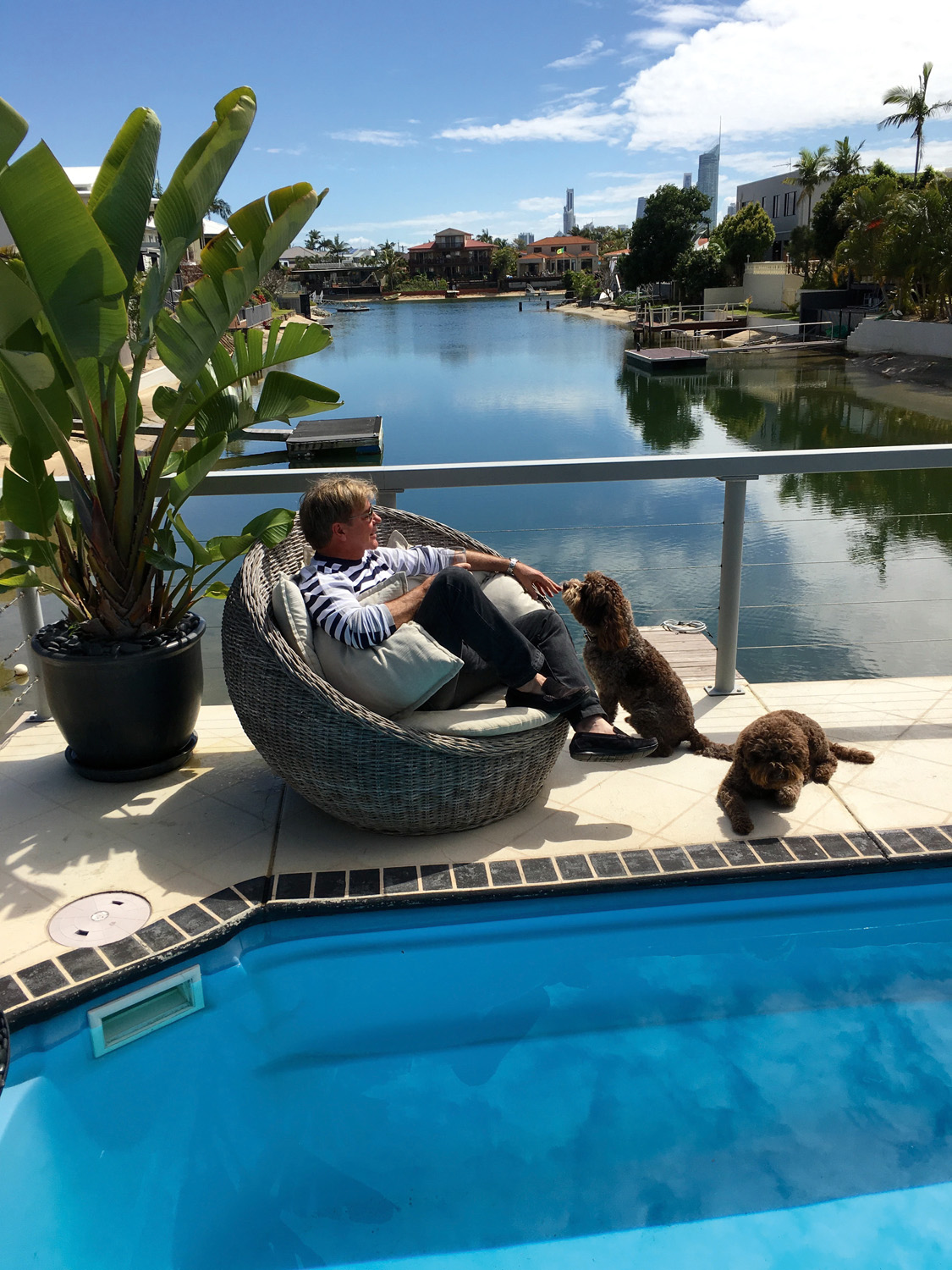 “I know I’m blessed to live here,” says Gregg. “And every day, I consciously give thanks. But even with my separate house, I was still working too hard and not disconnecting from Gaia. With the other three directors, we realised we needed to buy somewhere away from Gaia, where I could escape on weekends and have a life, so we bought a fabulous apartment on Broadbeach Waters.” Securing a one-bedroom villa, the apartment features a huge living area and generous deck with swimming pool. “It’s right on the water facing north with a wonderful city skyline,” says Gregg. “It’s perfect for me on the weekends.”