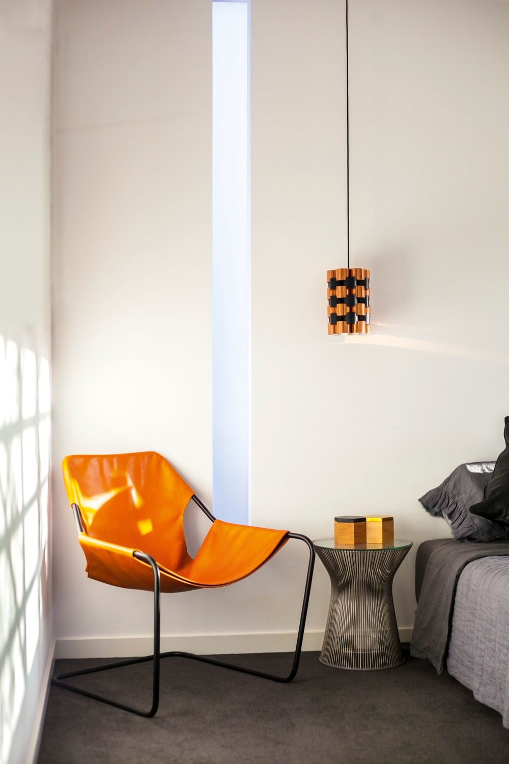 Furnishings are simple and cut to the chase here, with a Halo pendant adding another dimension and materials including leather, cowhide and timber adding layers of warmth.