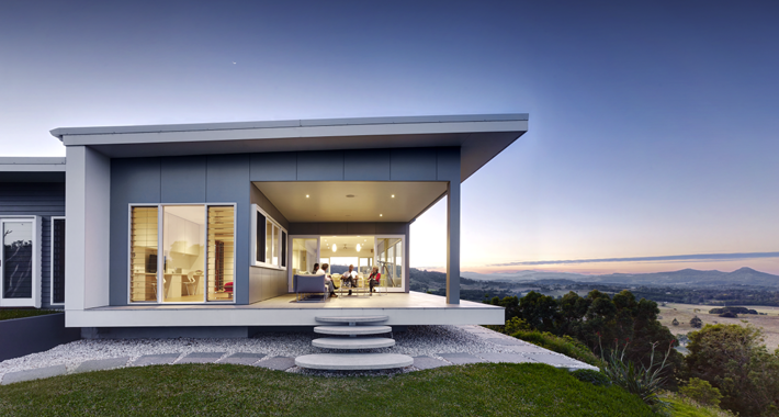 A home design situated in a commanding hilltop position that looks out onto stunning Byron Bay, Mount Warning and the lush surrounding hinterland. This contemporary residence celebrates nature and sits lightly on the land. The owners, an environmentally conscious couple with one daughter, use this cliff-top beauty as a holiday retreat from their home in Sydney. What better way to escape the city than to immerse yourself in a setting as tranquil as this?