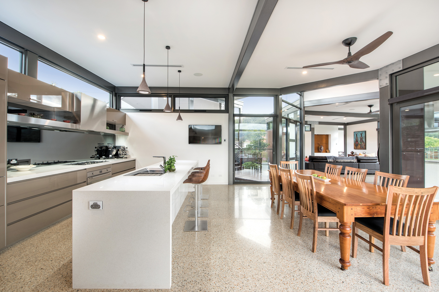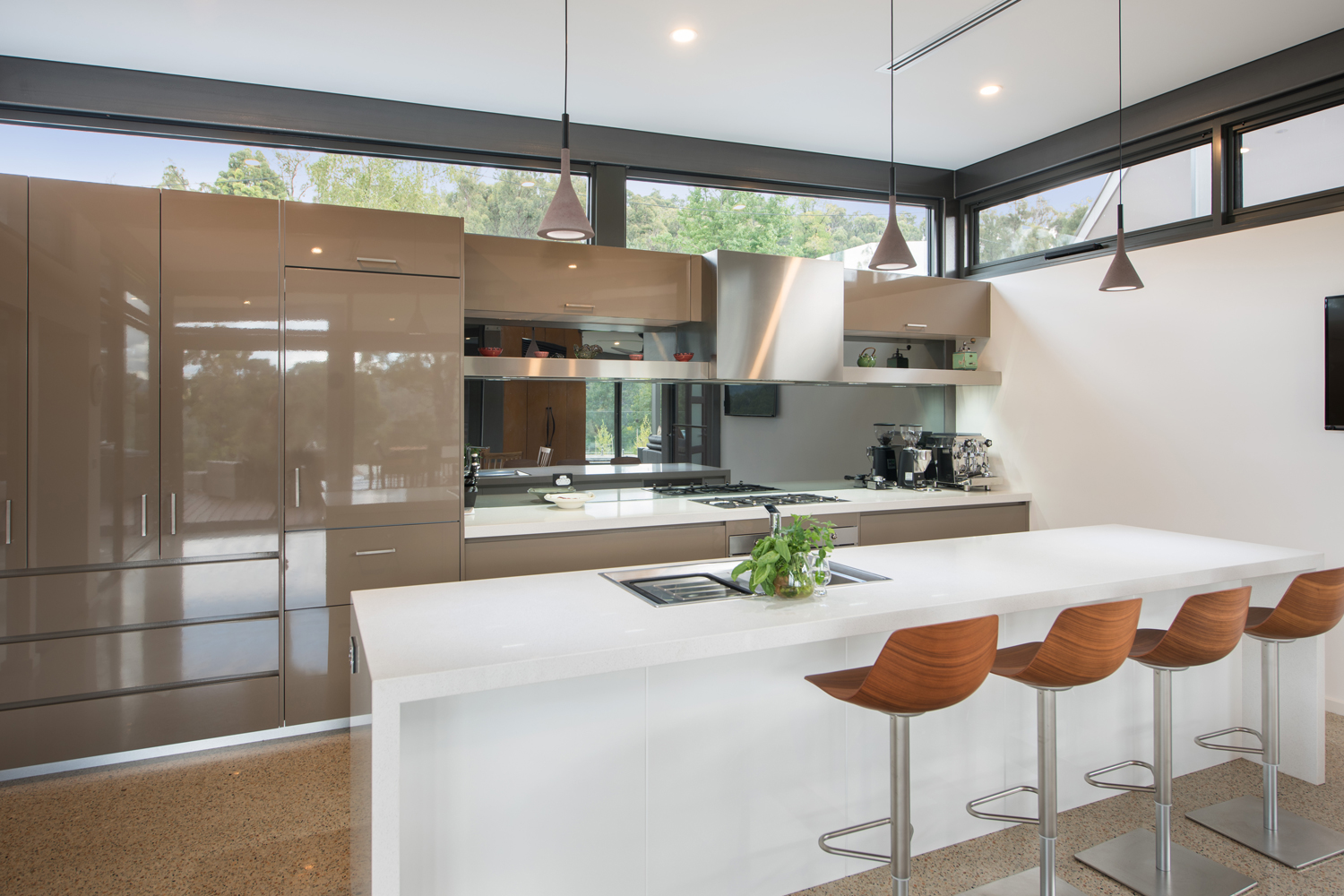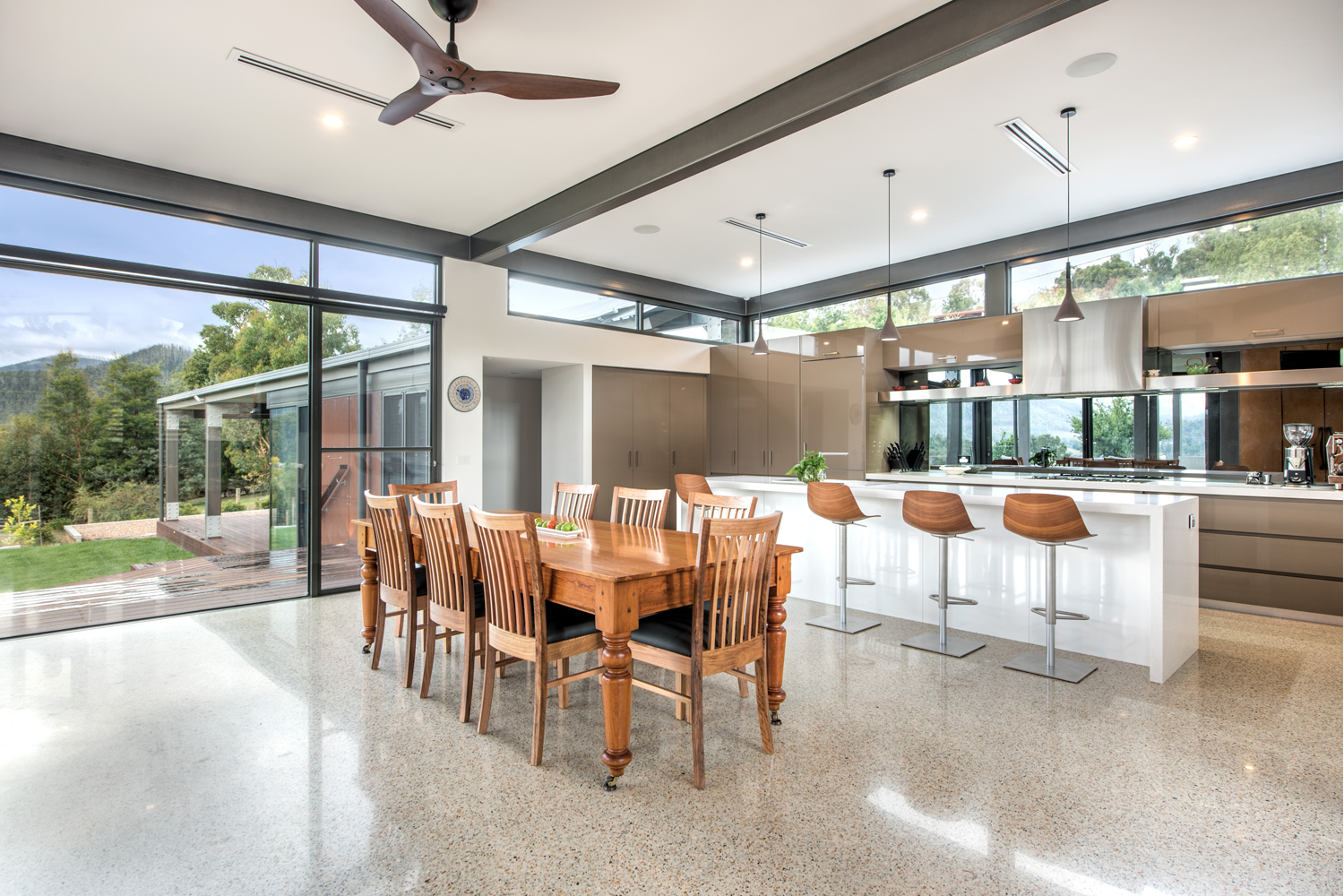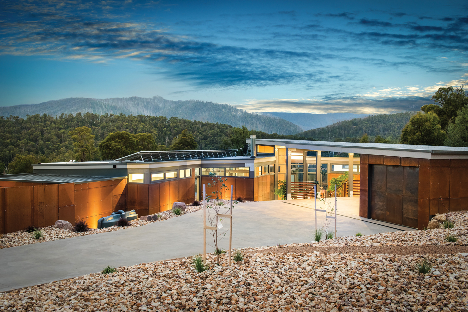 The scope of works called for the construction of a high‐end contemporary home, sitting into a slight embankment and taking account of the views to the surrounding hills of Marysville.