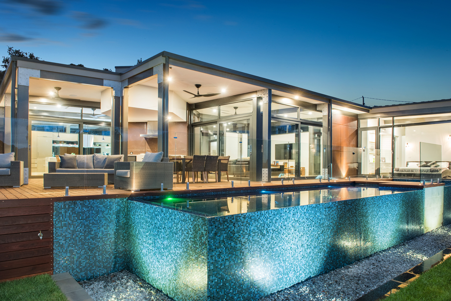 From the initial viewing of this house, and from any direction, it is clear that it is constructed to the highest levels in all aspects of the build. Attention to detail is a key. The client was adamant that clean, crisp lines were to complement the sharply angled design of the floor plan. To that end, the plaster finishing, commercial window fabrication, two‐pac kitchens with touch fittings and the skillion roof design were meticulously installed and finished. The use of outdoor spaces allows for a combined internal –external lifestyle. It was pleasing to note the owner’s comments that the completed product more than meets their initial expectations in design.