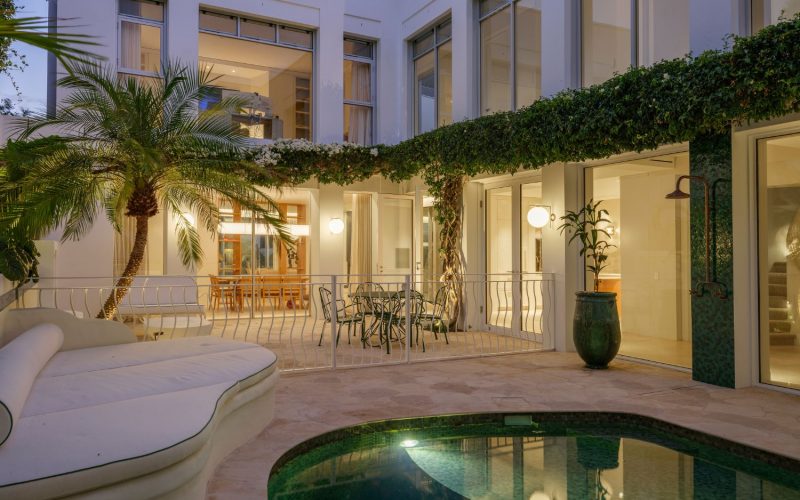 The plan for Clovelly House, designed by John Brown Projects, involved opening up the windows to the view and allowing light to enter the building, in addition to new joinery throughout and new bathrooms to main living areas. Windows and doors were renewed with soundproofing and double glazing. The existing pool was also demolished and relocated to create a safe pool for young children.