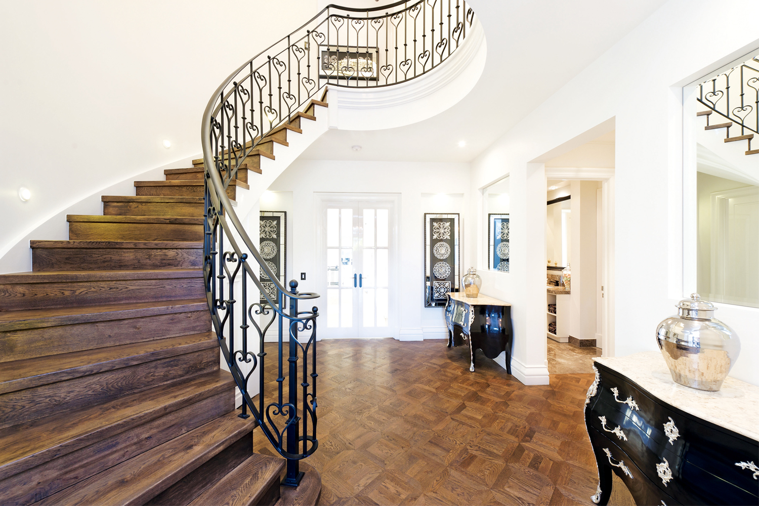 The cherry on the top of La Provence’s facade is the wrought-iron cresting along its hipped slate roof. In true French tradition, the external stylised motifs appear inside the home, as well as the classic fleur-de-lys and a signature E for Englehart Homes.