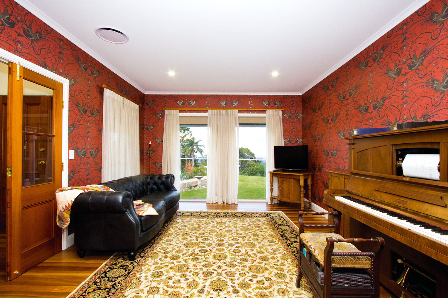 Spread over an impressive 388 square metres, the four-bedroom home accommodates a large office, meals and family room adjoining the generous-sized kitchen, a wallpapered lounge room with plenty of room for the family piano, an upstairs retreat area, ensuite with spa bath and large shower, storage rooms, powder room (toilet and vanity), two-and-a-half bathrooms, and a double-car garage with extra storage space connected via a covered timber walkway.