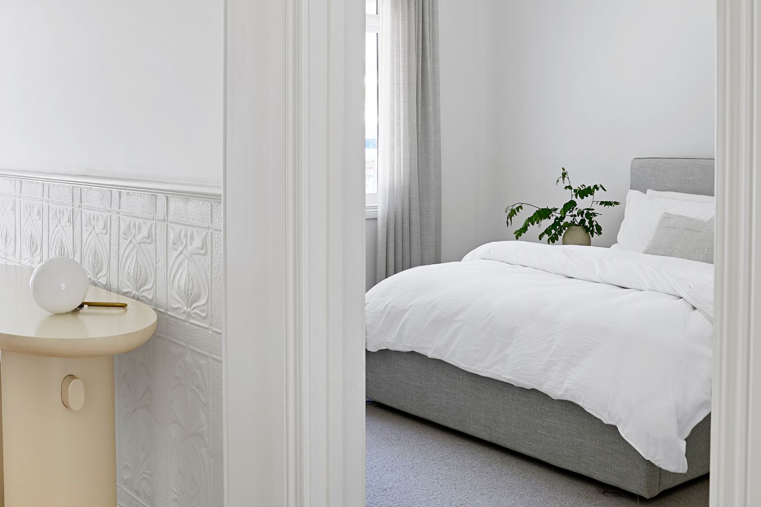 For Sammy, one of his favourite aspects is the retention of the original elements. “This includes fireplaces, existing timber flooring and pressed-metal ceilings — it ensures the home’s heritage is not only preserved, but celebrated,” he explains. “These features add richness in texture and detail, sympathetically balanced against the modern additions.”