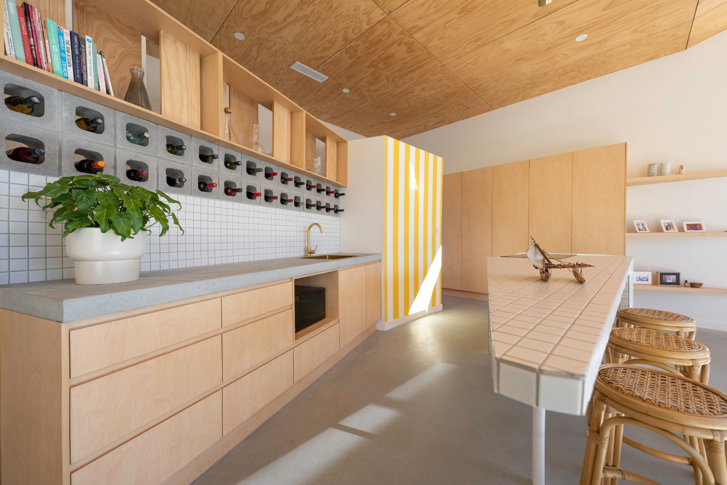 “When Mick was warned about the possibility of numerous variations due to the project’s experimental nature, he said that was fine,” says Nick. “I regretted, saying that!” While the structural plan didn’t change during the build process, there were some internal variations. These include the addition of skylights, window sizing, the choice of plywood species, joinery and tile selection.