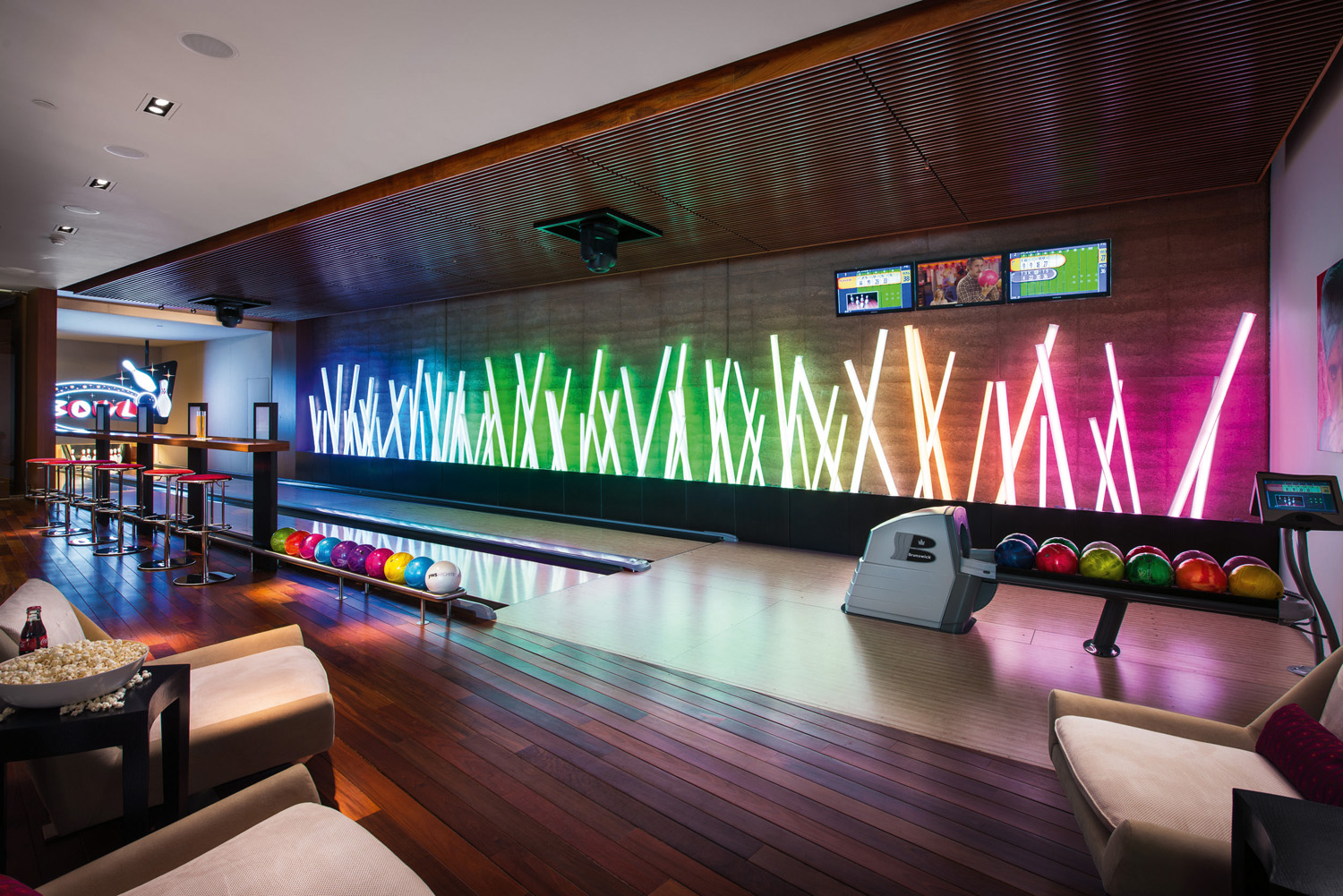 When you think about Las Vegas, a few things spring to mind — lights, glamour, luxury, and of course, the general consensus that everything is larger than life. For two hospitality architects living and working in Sin City, it was only natural that hotels including the Hard Rock Café, the MGM and Mandalay Bay would influence the design of their dream home. And where else would you have not one, but two bowling alleys in your own house?