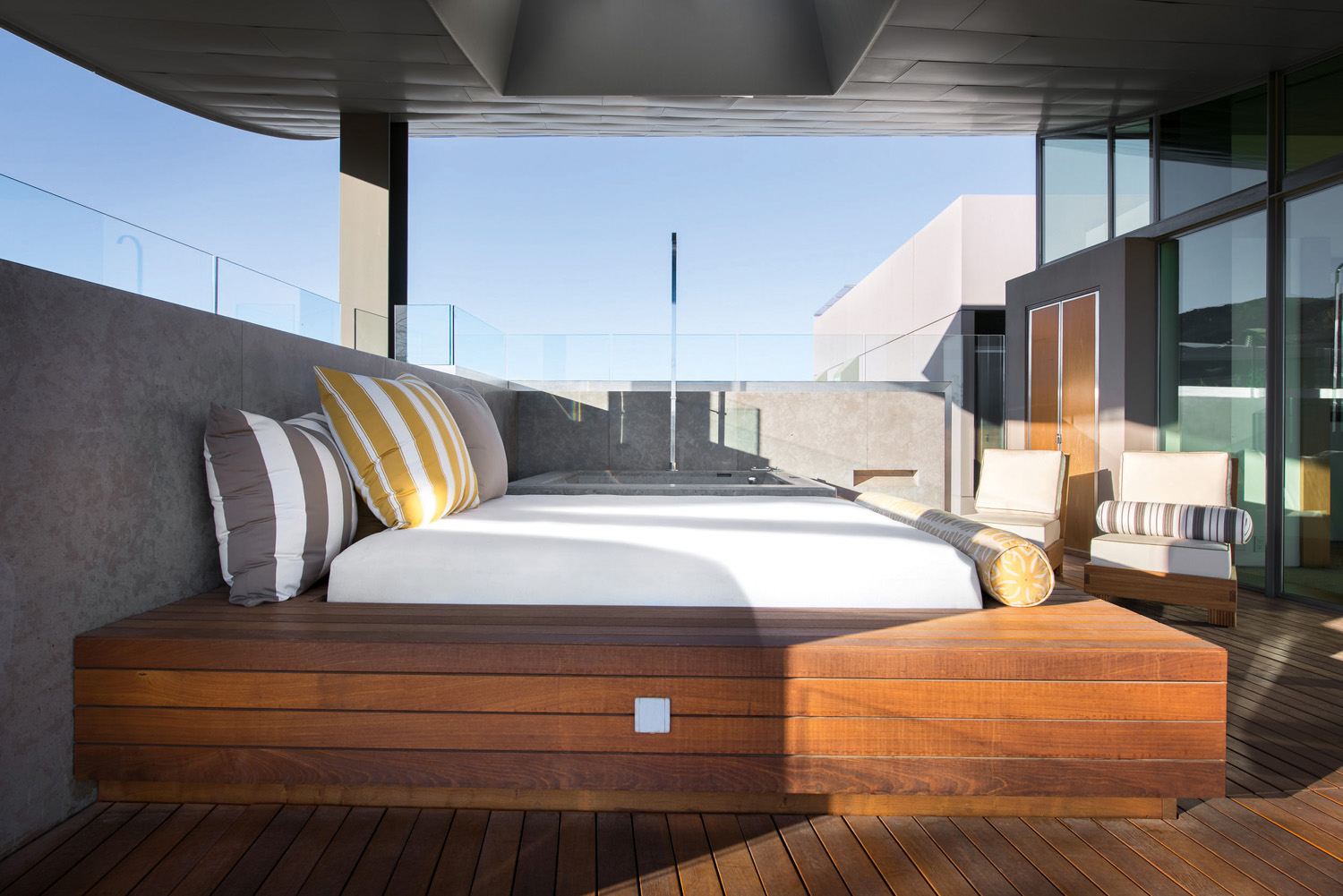 Spanning three storeys, the home is divided into sections according to privacy and play. The master suite fills the top floor and encompasses an office, walk-in closet, TV and spa-esque master bathroom. “We wanted to maximise the expansive desert views from the master suite and orient the home to take advantage of the site’s tranquil, private location,” explains Jonathan. “It’s a space we never want to leave.”