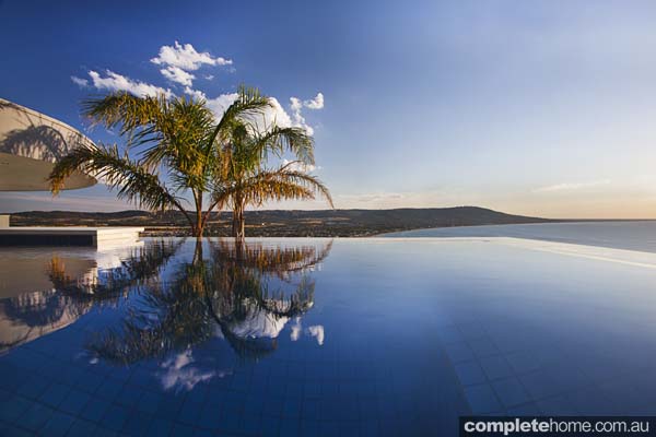 White is used in abundance. Teamed with beige porcelain tiles, white leather lounges and the plethora of natural light, this subtle colour scheme creates a luminous, airy feeling in the home, allowing the view to take centre stage. Against this minimalist backdrop, accessories in greys and browns add earthy tones without detracting from the view. This theme is continued outside with organically-laid limestone pavers and solid hardwood timber decking.