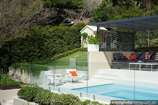 The owners of the property have a young and growing family, so the design of the pool and outdoor area had to meet a number of practical requirements. An entertaining area for the adults and a pool for the kids to splash around in was essential. They also wanted space for a vegetable garden and ample play areas for the children.