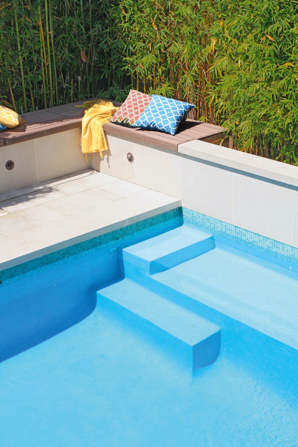 The large pool steps and extensive underwater bench double as informal seats within the pool and with heated spa jets incorporated in the backrest, provide the perfect warm place for parents and their children to chat. The underwater bench also acts as a safe haven for younger children to play in the pool.