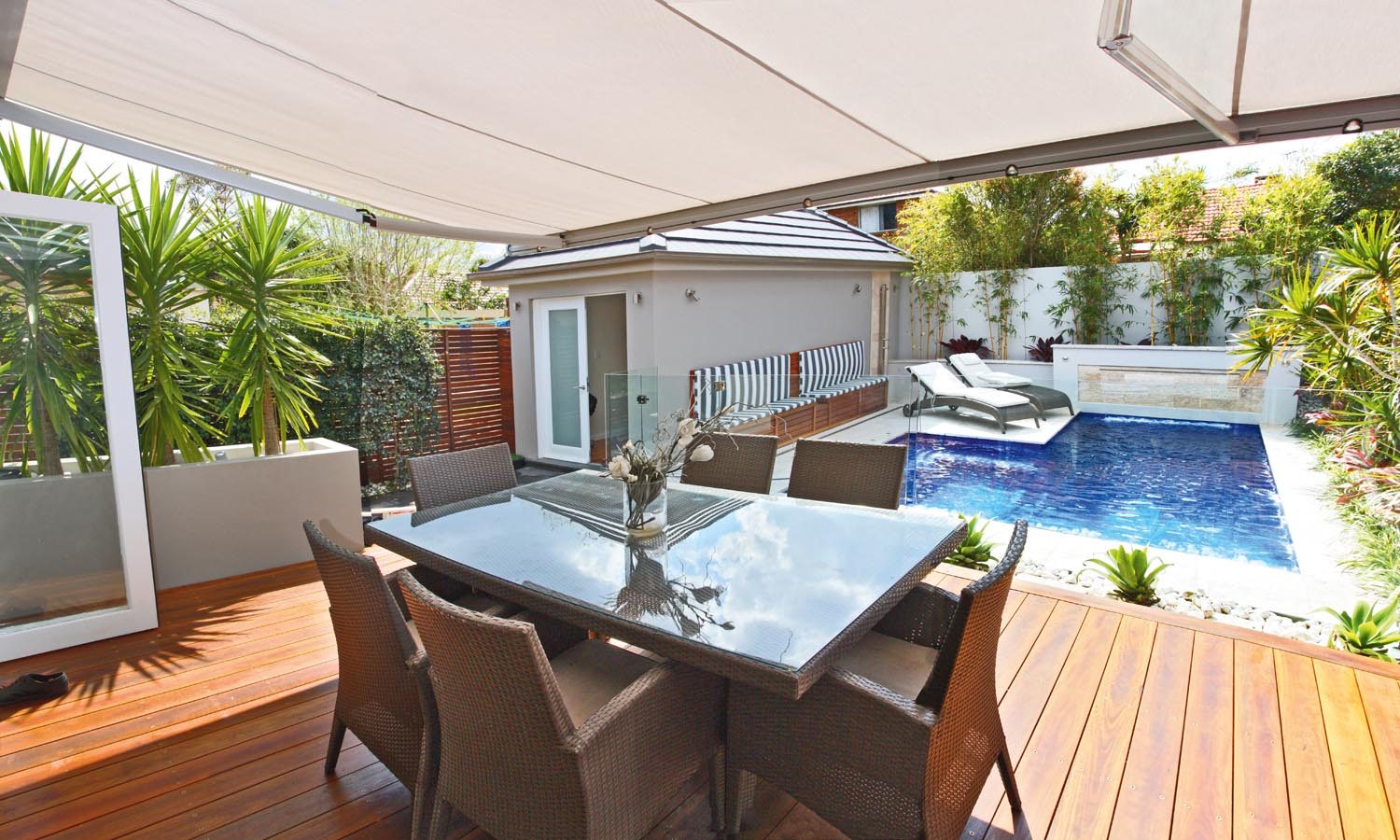 “Careful, considered design will ensure the outdoor room appears at one with the overall property and not as an afterthought.” A further link between the spaces can be created using the same architectural styles. “For example, a contemporary house will look best with a contemporary pool and cabana, succulent plants and monotone colours,” John says. “Replicate the design lines of the house in the cabana, be it in the barge board, concertinaed doors and windows, or timber types and styles.”