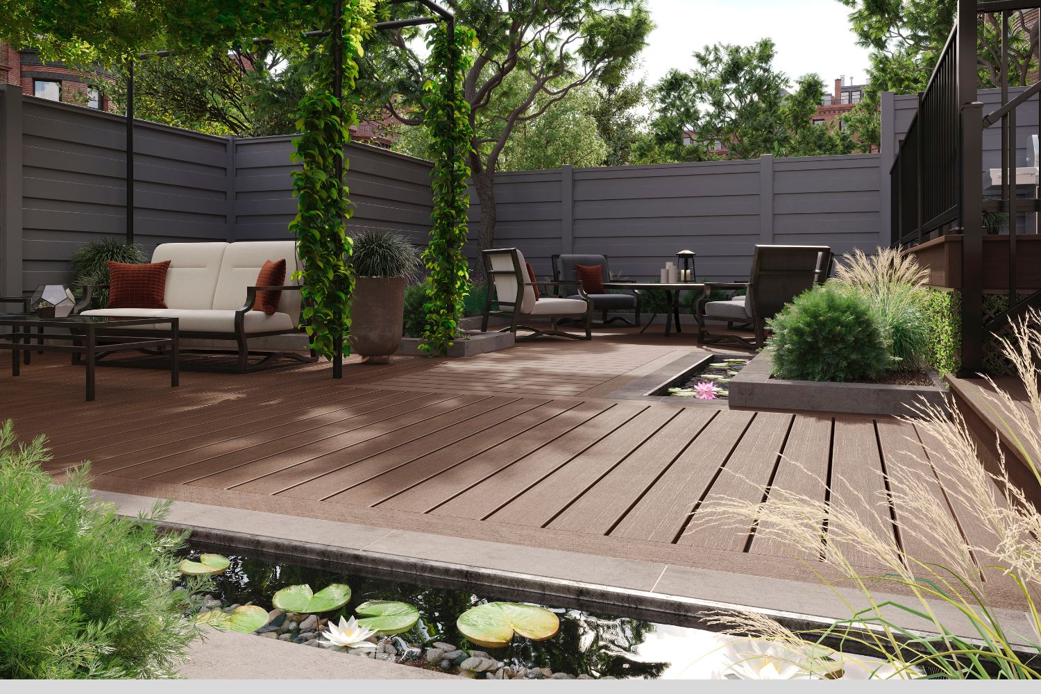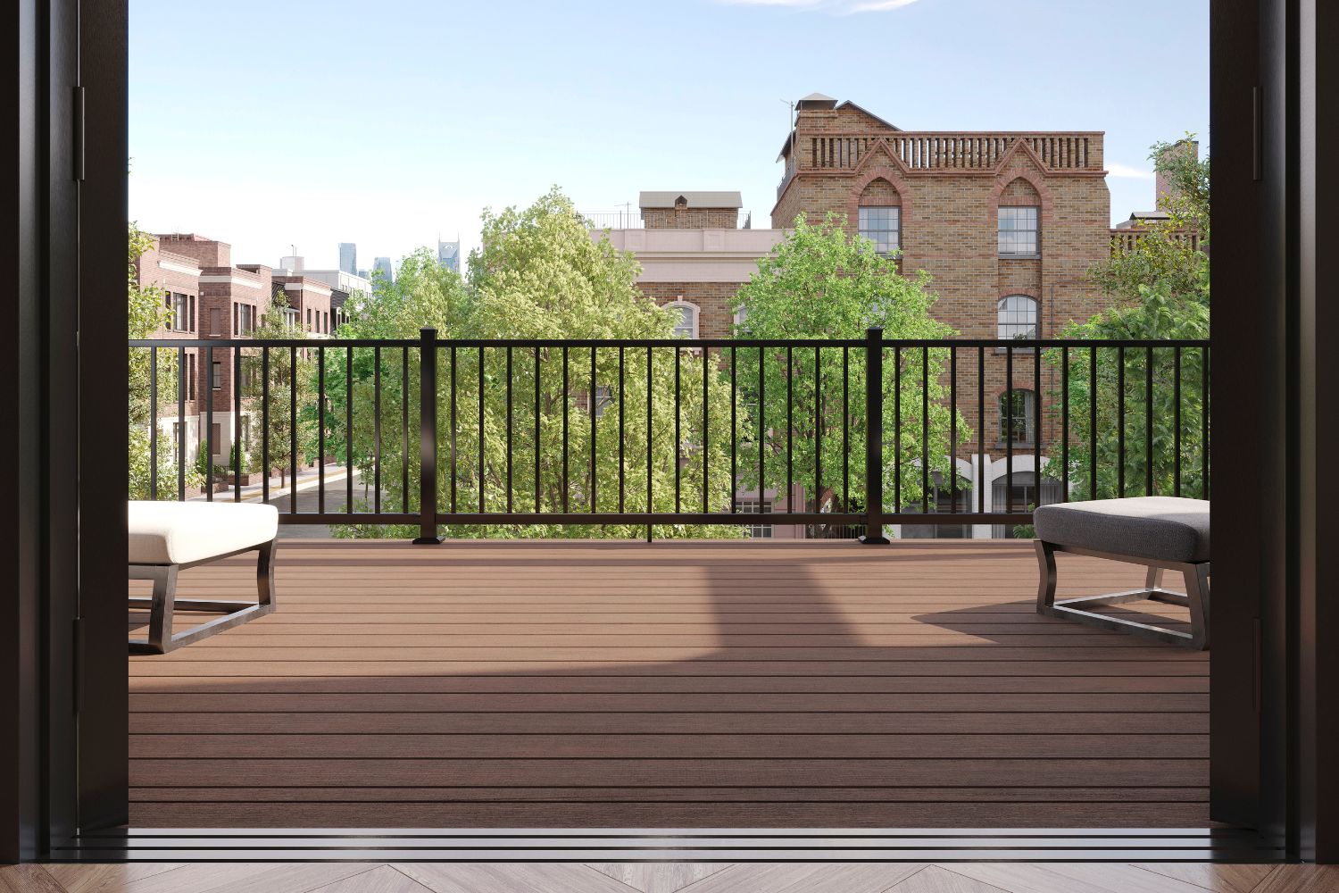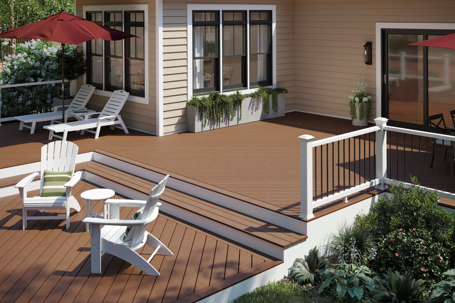 *Trex SunComfortable™ decking stays cooler than original Trex boards, but like all decking, it will get hot in direct sun, especially darker colours. Care should be taken to avoid extended contact between exposed skin and the deck surface, especially with young children and those with special needs.