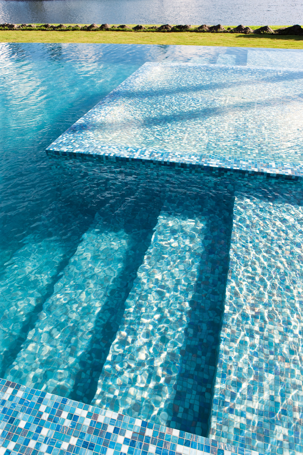 Pavers Plus present stunning glass mosaics, paving and walling for designer pools and landscapes