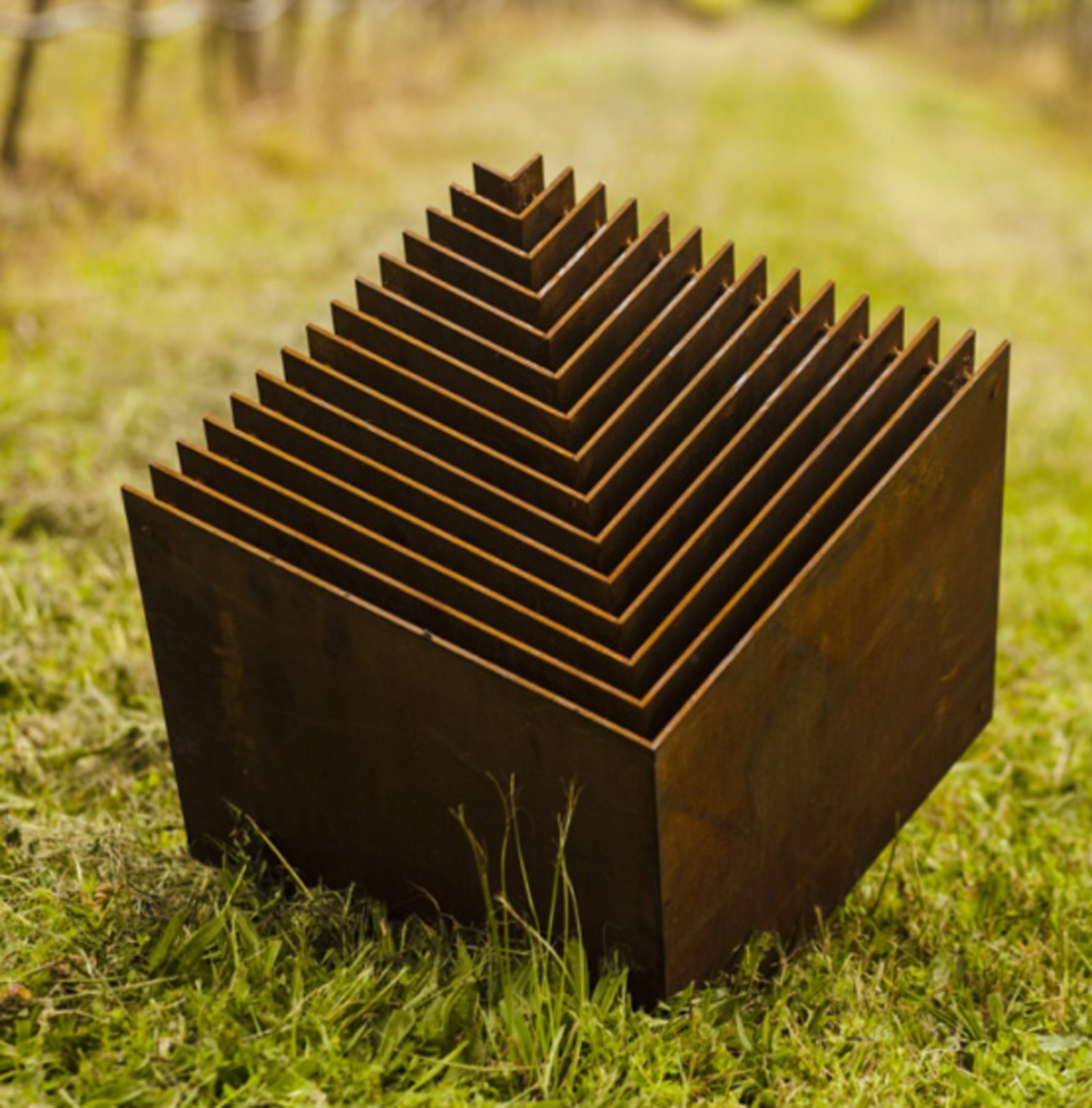 The sculptures are made from corten, mild steel and glass and while the steel can be powder coated, Matt Hill thinks the light works best when the sculpture is left to rust. Some of the most exciting features of his sculptures are light pattern, illusions and play of shadows during both the day and night.