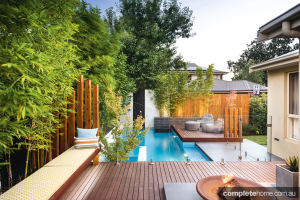 “The main goals were to create a multi-functional outdoor entertaining area, which would include a swimming pool and alfresco dining area, turn the change in backyard levels into an asset and make the space much more private,” says Matt.