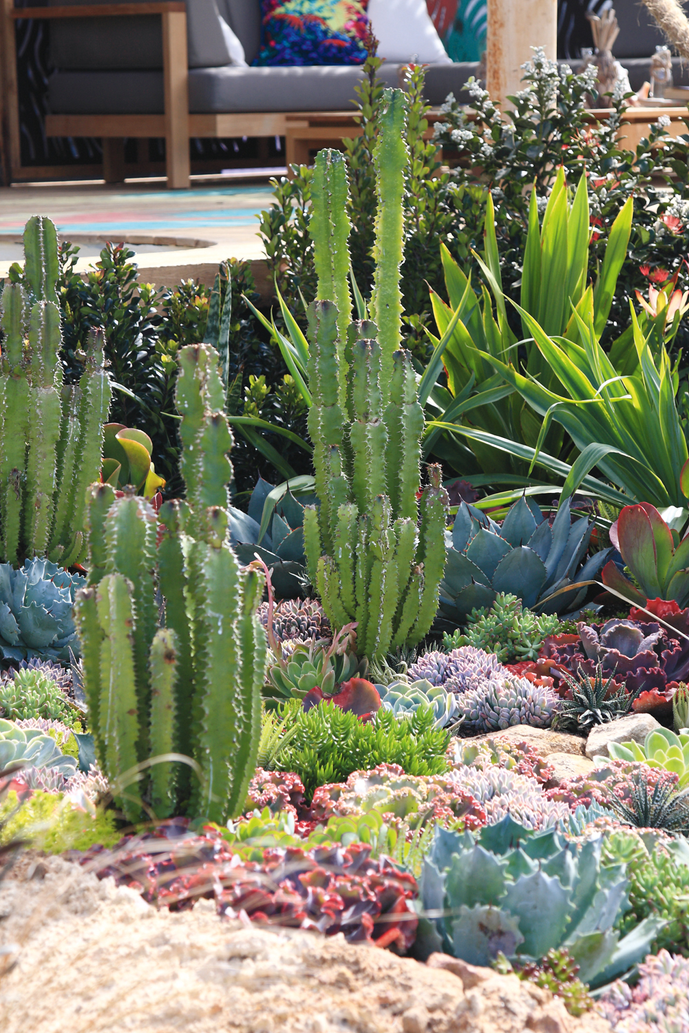 One of the most engaging elements of the design was the “coral sea”, which was fashioned out of a diverse array of colourful plants, mainly succulents. Phillip is known for creating plant tableaux that imitate the forms and colours of other elements in the natural world and here his goal was to replicate the look of a reef.
