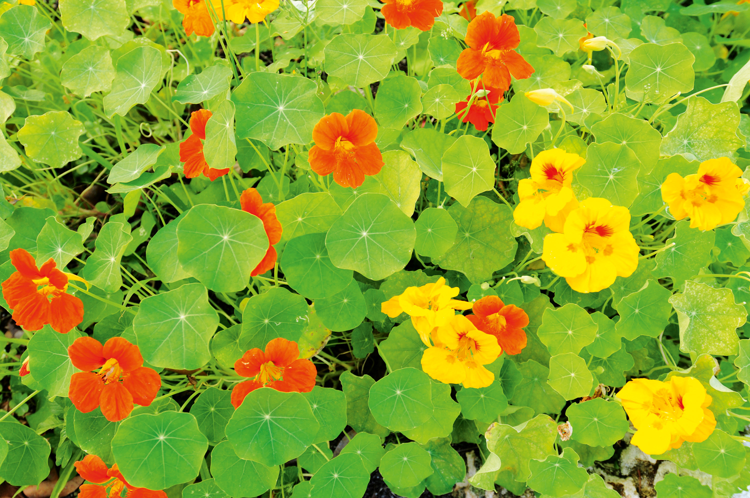 Grow living groundcovers using prostrate plants — including nasturtium, sweet potato or pumpkins — to cover the soil with a green alternative to mulch. Even grass helps protect soils from the erosion caused by heavy downpours and is an ideal companion for orchards. For a dense cover over the soil, select plants that form roots as they grow such as sweet potato (shoots or sprouted tubers can be planted now). Groundcover plants also help to keep soils cool and discourage weed growth. Zucchini is an efficient smotherer of weeds.
