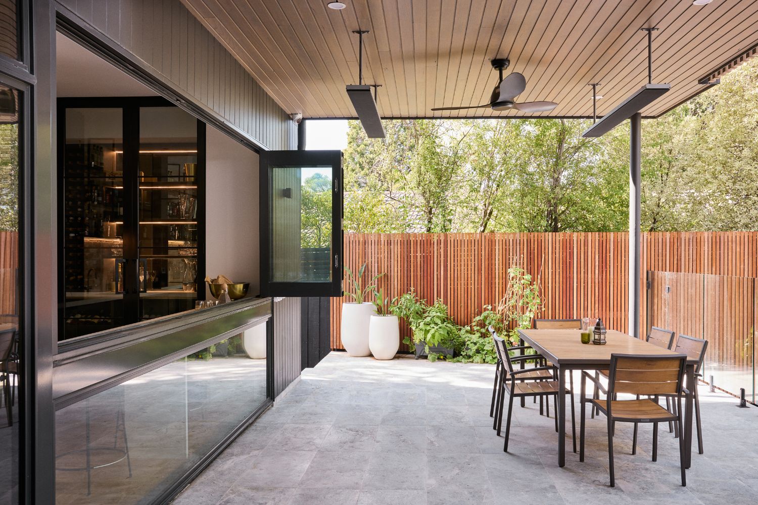 “Whether that is timber flooring transitioning to timber decking, or inside tiles transitioning to outside tiles, or concrete flooring inside that flows outdoors — there are many