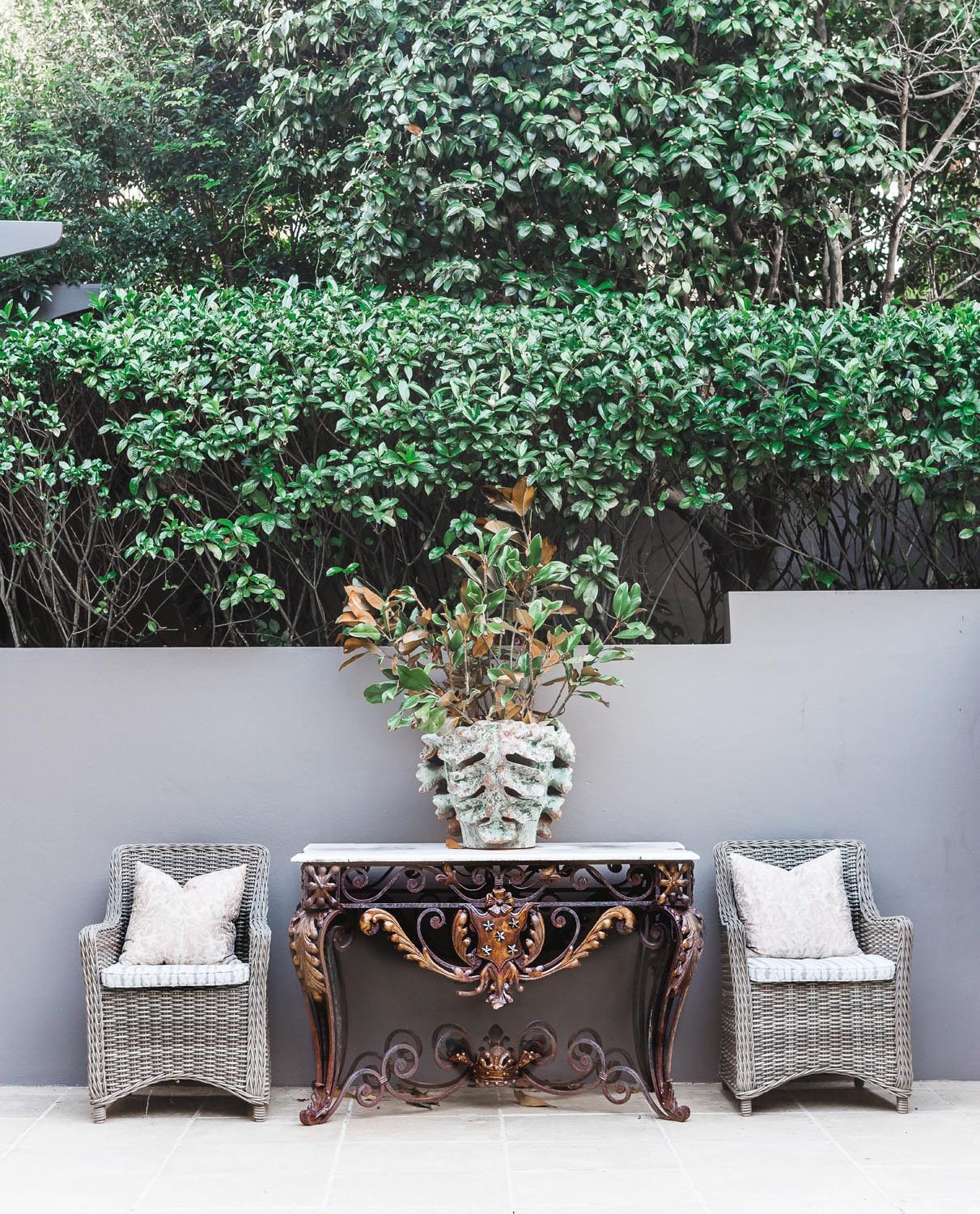Finding outdoor furniture which offers the same level of comfort one might find indoors can be a challenge, but here, Marylou has injected comfort into the space with Minotti outdoor furniture and the Paola Lenti ottoman — pieces which are far from standard outdoor furniture in terms of function, comfort and aesthetics. Incorporating this furniture into the design played a part in Marylou’s inspiration.