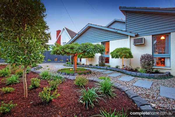 Whether you’re gazing out from the windows of the lounge room or strolling by on the footpath, the centrepiece of this front garden, designed and built by Desired Effect Landscape Design and Construction, is unmistakable ‑ a flourishing 25-year-old weeping cherry tree.
