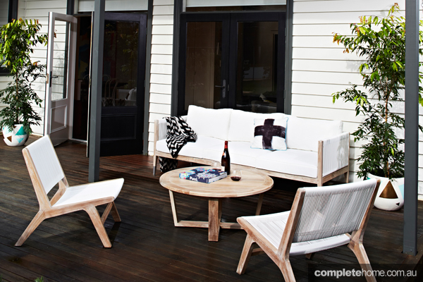 Perfect for outdoor rooms, the Reef collection uses a mix of white-wash teak with plastic strands to create light and glossy look. This original mix of materials means Reef has a real point of difference.