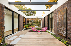 Given the significant size of the project, different garden styles were used in different areas. The two internal courtyards have a very modern feel, with clean-lined timber decks, laser-cut Corten light boxes and feature climbing frames.
