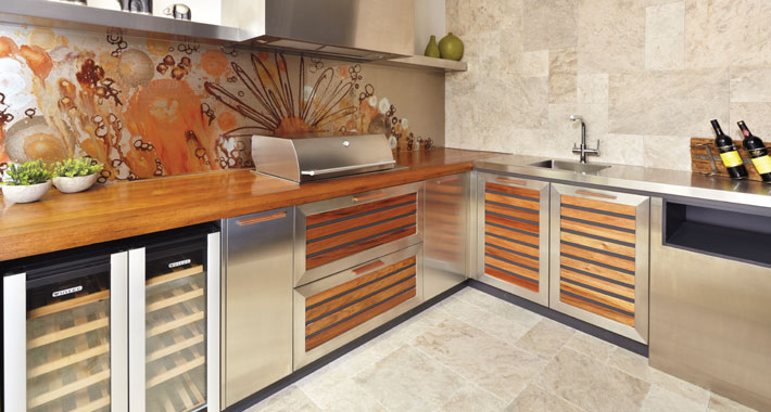 Australia is blessed with one of the best climates in the world. With our long summers and relatively warm temperatures all year round, outdoor entertaining is an absolute pleasure. There’s nothing more quintessentially Australian than a backyard barbecue, but the humble barbecue has come a long way in the past few years. Gone are the days of a grill chocked up on a few bricks; they have been replaced by deluxe versions and full outdoor kitchens. In order to demonstrate just what can be done in any outdoor space, Susan Garsden from Garsden & Clarke designed this impressive outdoor display kitchen. “We do so much outdoor entertaining, so why not have a great facility to do it?” Susan asks.