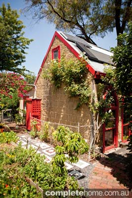 Asphyxia and Paula have a grid-connect solar electricity system that produces about two-thirds of their power needs. They also have solar hot water, a greywater recycling system and a 40,000-litre rainwater tank that provides enough water for inside their home as well as the garden.