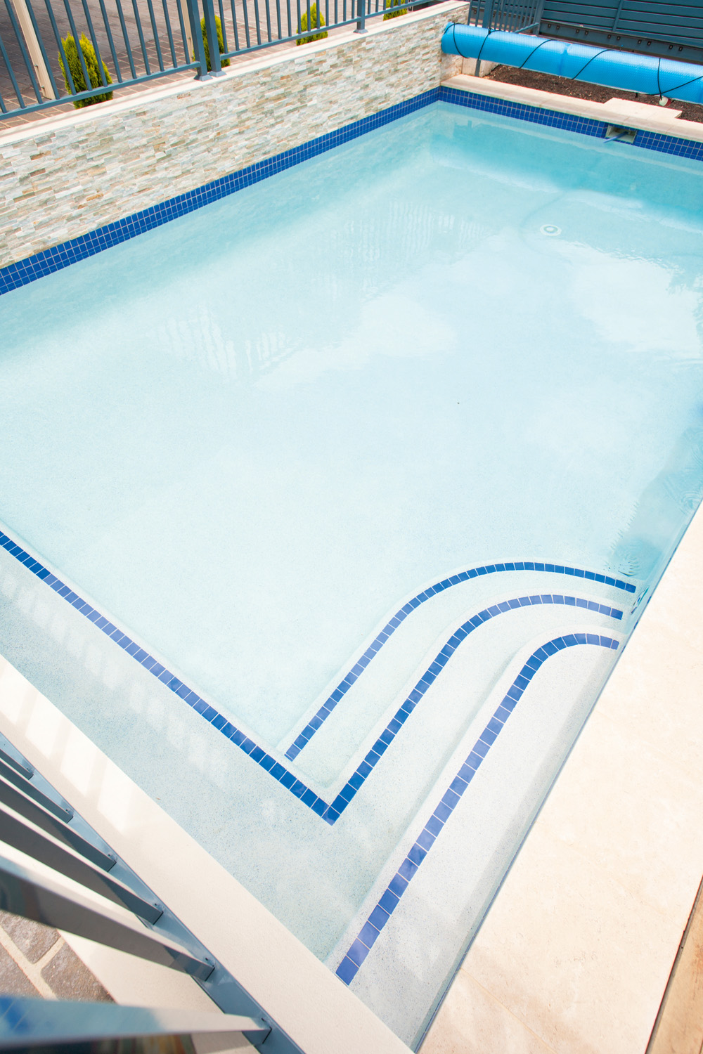 The owner designed this visually stunning and practical pool, enlisting the help of Jade Swimming Pools to realize its completion